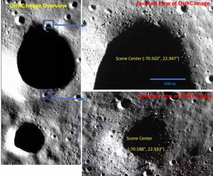 Orbiter High-Resolution Camera (OHRC) has taken pictures of the lunar surface. These photos, taken from an altitude of 100 kilometers above the lunar surface, are from the Bogislawski E crater located in and around the southern polar region of the moon. It has a diameter of 14 kilometers and a depth of three kilometers. ISRO said that large stones and small pits are seen on the moon in the photos.