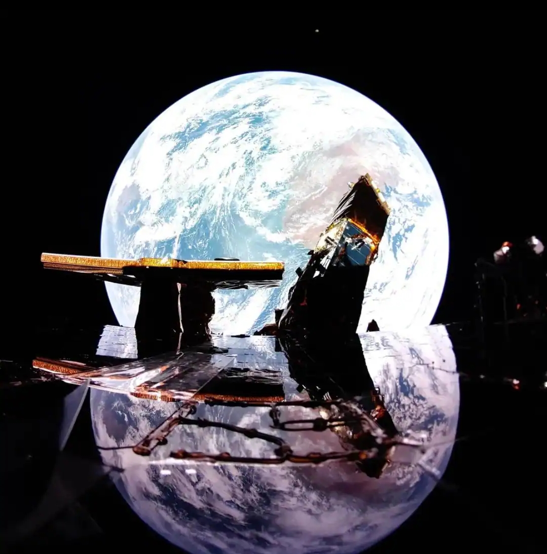 The lander filmed Earth passing in front of the Moon, creating an Eclipse and as it moved to the dark side of Earth, the planet turned into a glowing crescent. Blue Ghost lunar lander has captured an image of Earth with the moon appearing as a tiny dot in the background while the spacecraft’s reflective solar panels mirror Earth’s image in the foreground.