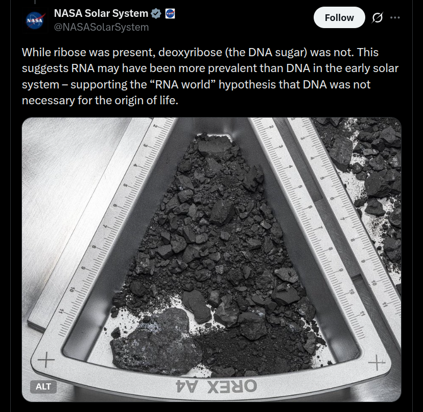 Speaking more, while the presence of ribose was found, the presence of the DNA sugar – deoxyribose hasn’t been found yet, and this is what carries the genetic information of an organism. Thus, it is now being believed that in the early solar system, RNA could have been more prevalent than DNA. Additionally, the ‘RNA world’ hypothesis which states that DNA is not necessary for the origin of life has also been supported by these findings. To note, this ongoing research is being carried forward by scientists at NASA Goddard, JAXA (Japan Aerospace Exploration Agency), and multiple Japanese Universities.