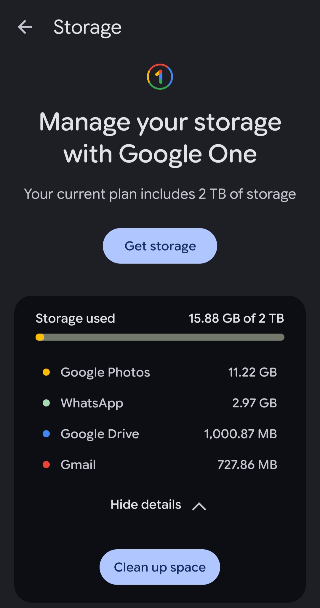 Check how much storage WhatsApp is using and adjust backup options in WhatsApp.