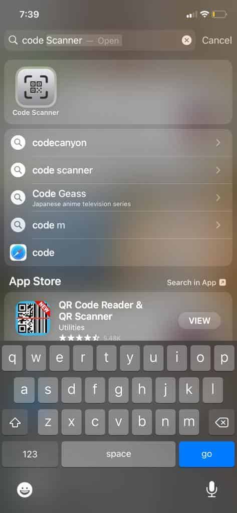 Now we will reveal a secret app on iPhone and how you can get to that app. So first you have to scroll right from your home screen. Second, on the top you will see a search area, you just need to type there “Code Scanner”. That is it and you will see that app to scan QR Code from your phone itself and will open up the camera with the flash button.