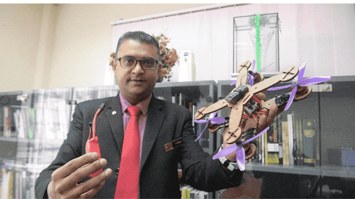Mohamed Thariq said drones made from bio-composite material had a better strength-to-weight ratio than drones made from plastic fibres and were also smaller, lighter, and easier to dispose of.