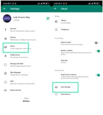Step 1: Launch WhatsApp and Select “Chat Backup” from “Settings > Chats.