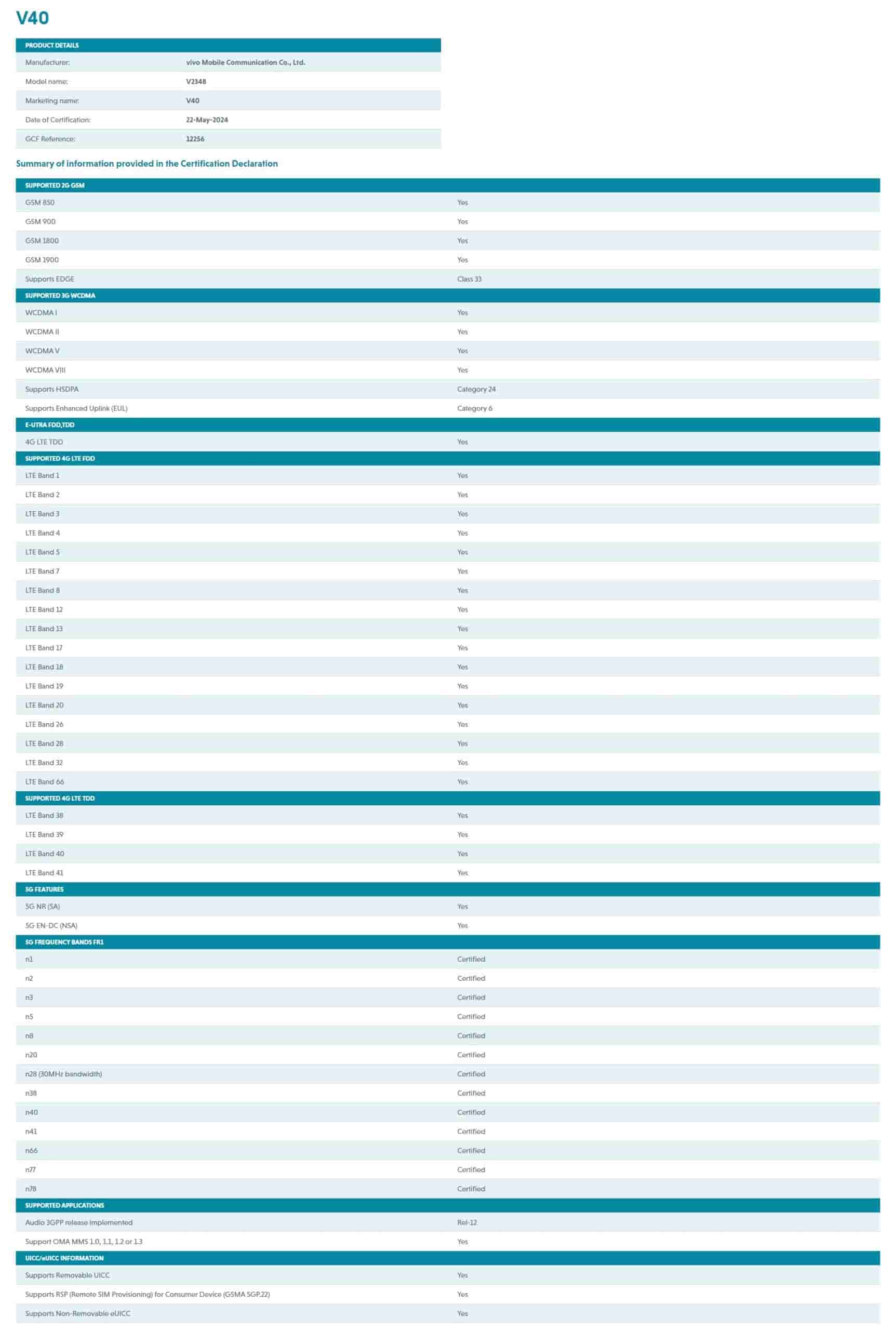 A new member of the Vivo V40 series, “Vivo V40 5G”, sighted on GCF, Bluetooth SIG and TDRA