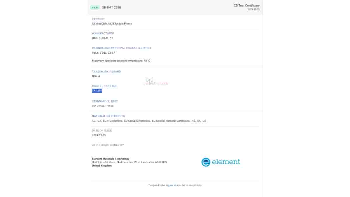 The alleged HMD smartphones bearing model numbers – ‘TA-1691’ and ‘TA-1661’ have been listed on the Element database and both of them are mentioned to be 4G mobile phones supporting 2G/3G/4G network connectivity. The listings point to the trademark/brand as ‘Nokia’, suggesting that these may be launched under Nokia branding. The input power of the two devices is 5 Vdc, 0.55 A and maximum operating ambient temperature is 40°C.