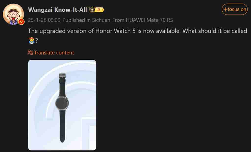 As per what a Weibo tipster (@Wangzai Know-It-All) has revealed, this device is believed to be an upgraded version of the Honor Watch 5 model. Notably, unlike the rectangular dial, the upgraded version is revealed to have a circular dial. [Received via Huawei Central.]
