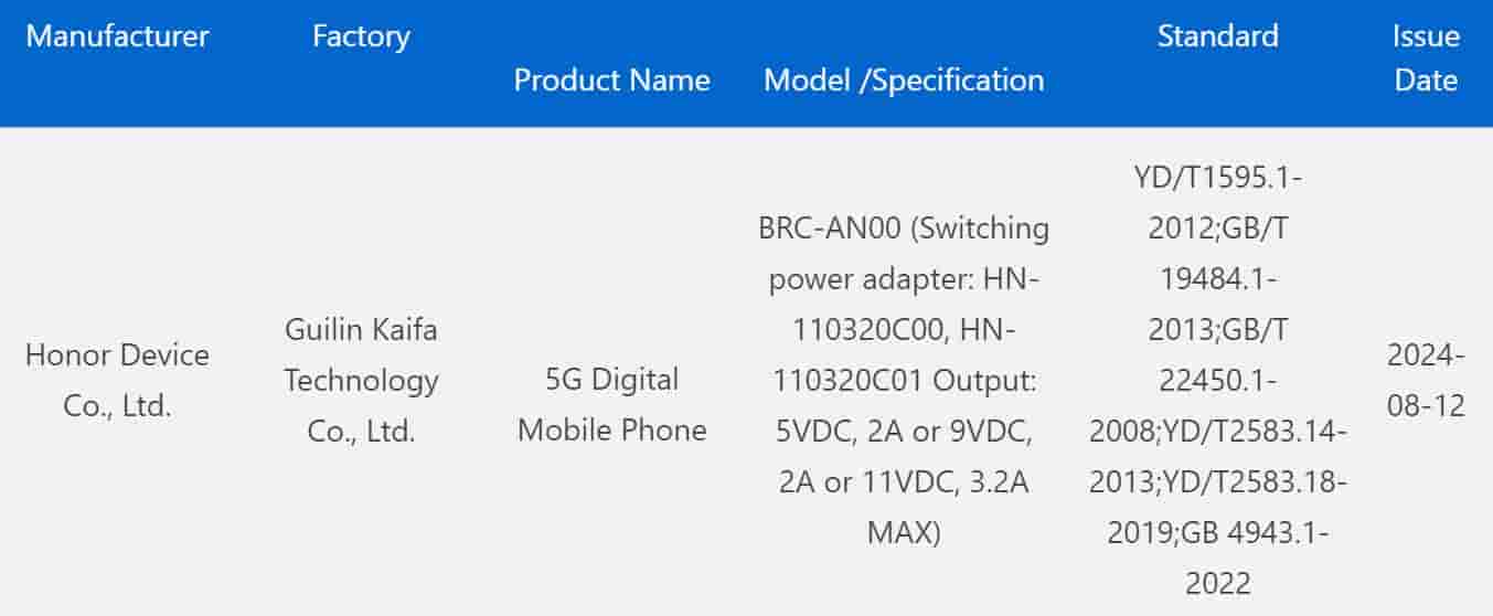 A new Honor device with model number BRC-AN00 has been spotted on China’s 3C certification website. Though the listing does not reveal the moniker of the device it is expected to be the Honor X60 smartphone.