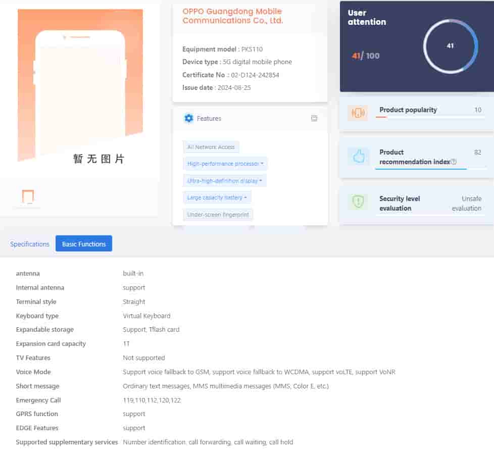 Today the same model number PKS110 has been spotted on the TENAA certification website. The database reveals the specifications of the upcoming device in detail.
