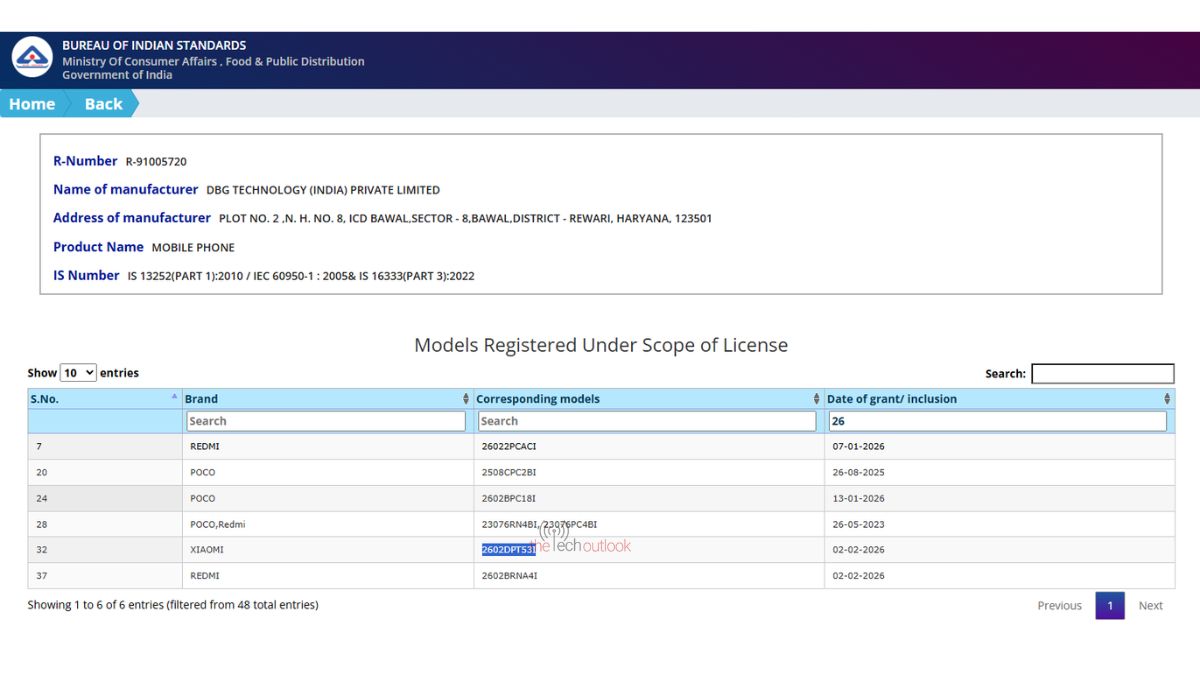 In addition, the Indian variant of the Xiaomi 17T with the model number “2602DPT53I” has appeared on the BIS certification website, effectively confirming its India launch. The BIS database also lists two additional Redmi-branded model numbers: “2602BRNA4I” and “26022PCACI.” At this point, no details are available regarding these two new models.