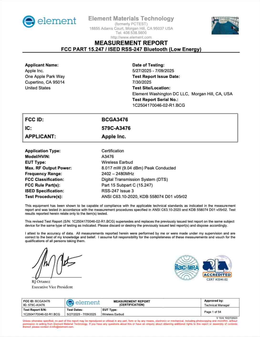 The Cupertino-based tech maker – Apple now seems to be working on a new Beats earbuds device and it has received the certification from the FCC authority. It has been certified with the FCC ID of ‘BCGA3476’, and has been categorized as a ‘wireless earbud’ (classified as a digital transmission system or DTS). Two model numbers have been revealed – ‘A3476’ and ‘A3477’, as well as details such as 8.017 mW (9.04 dBm) peak conducted maximum RF output power, 2402 ~ 2480 MHz frequency range, and -8.9 dBI antenna gain. Bluetooth LE (Low Energy) also seems to be a supported spec. To note, a charging case with the model number of ‘A3479’ has also been listed along with the earbuds, and it has been tested with an Apple MacBook (A1398), w/AC/DC adapter (A1435), Apple USB-C cable (A2515), and w/AC/DC adapter (A2879).