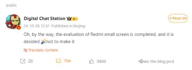 The reason is not disclosed yet but seems like it will still take some time for the smartphone brand to go to the compact phone route. To this information shared, users reacted in the comment section that Redmi should only concentrate on making large screens as small screens will arrive with lower configurations while one user suggested that the company should make a 7-inch straight screen.