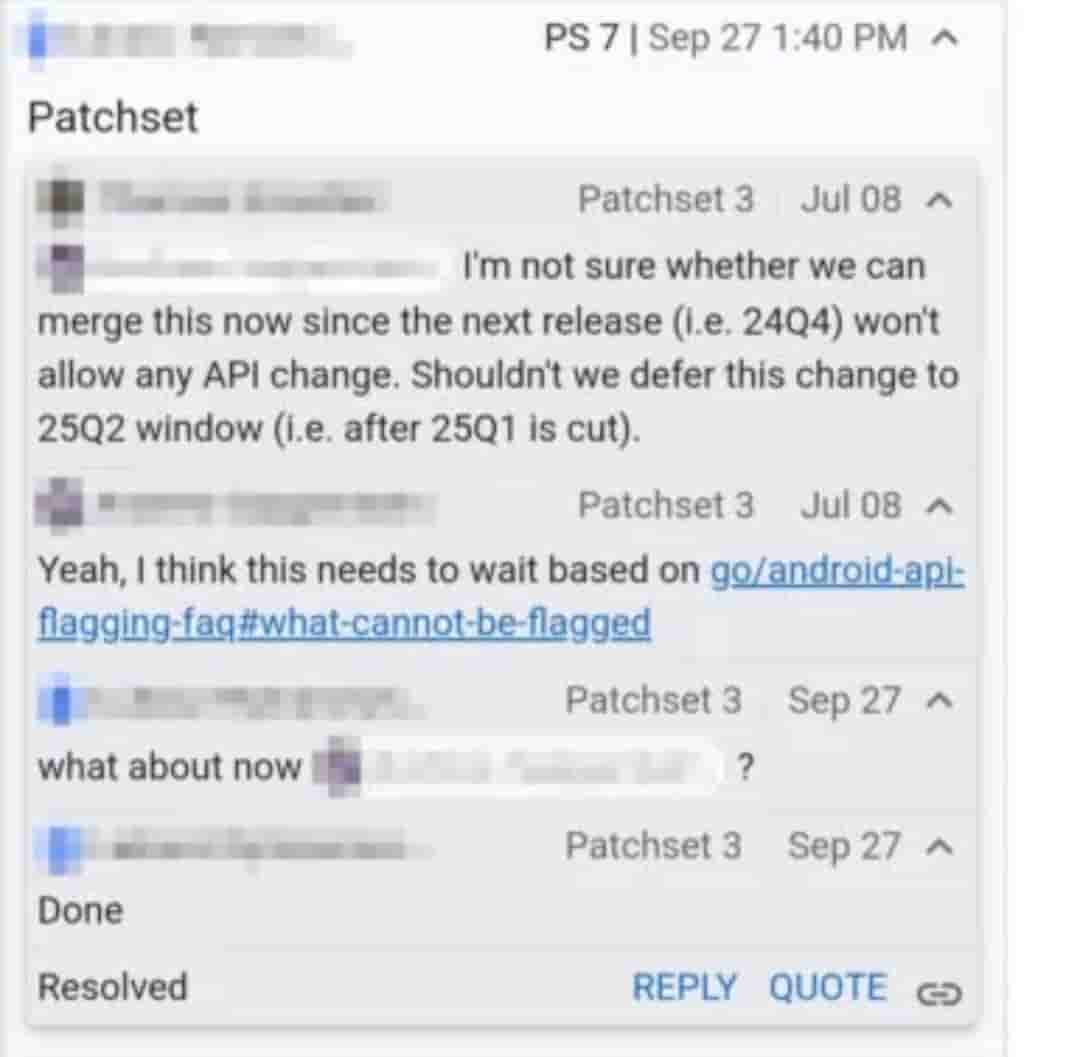 Going by this reference technique, 25Q2 suggests the launch timeline of the next major release of Android. Some Google engineers have also left their comments in AOSP that also hint towards the same launch timeline of Android 16.