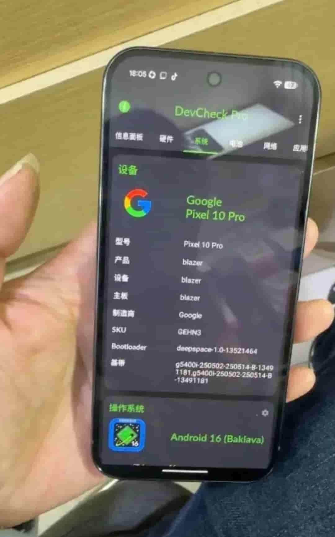 The camera bar looks huge, and a familiar rear design can be seen with triple rear cameras. There is a cover glass over the camera bar. This is a DVT1.0 prototype. It features a Tensor G5 chip that includes 2x Cortex- A520, 3x Cortex-A725, 2x Cortex-A725 and 1x Cortex-X4. The above image reveals that the chipset has a 5nm process, but as per the tipster, this is likely a mistake, as Tensor G5 is expected to be on a 3nm process. It also reveals 16GB of RAM and 256GB of storage. The device will run on Android 16 out of the box.