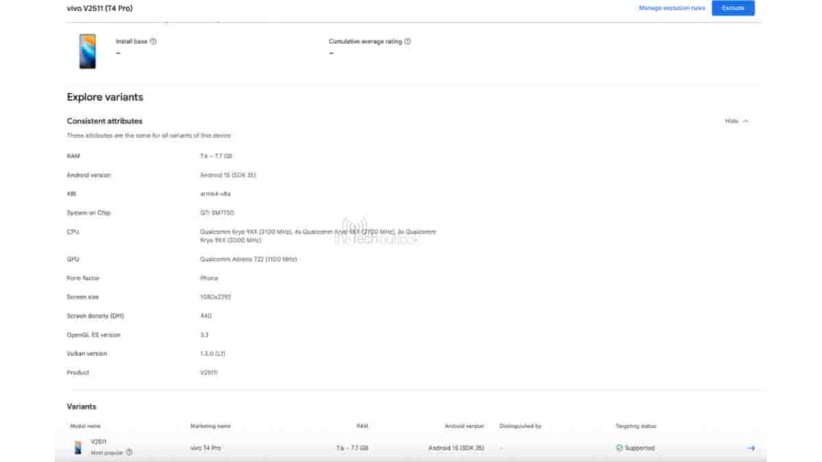 Google Play Console Listing Reveals Vivo T4 Pro with Snapdragon 7 Gen 4, Android 15, and 8GB RAM