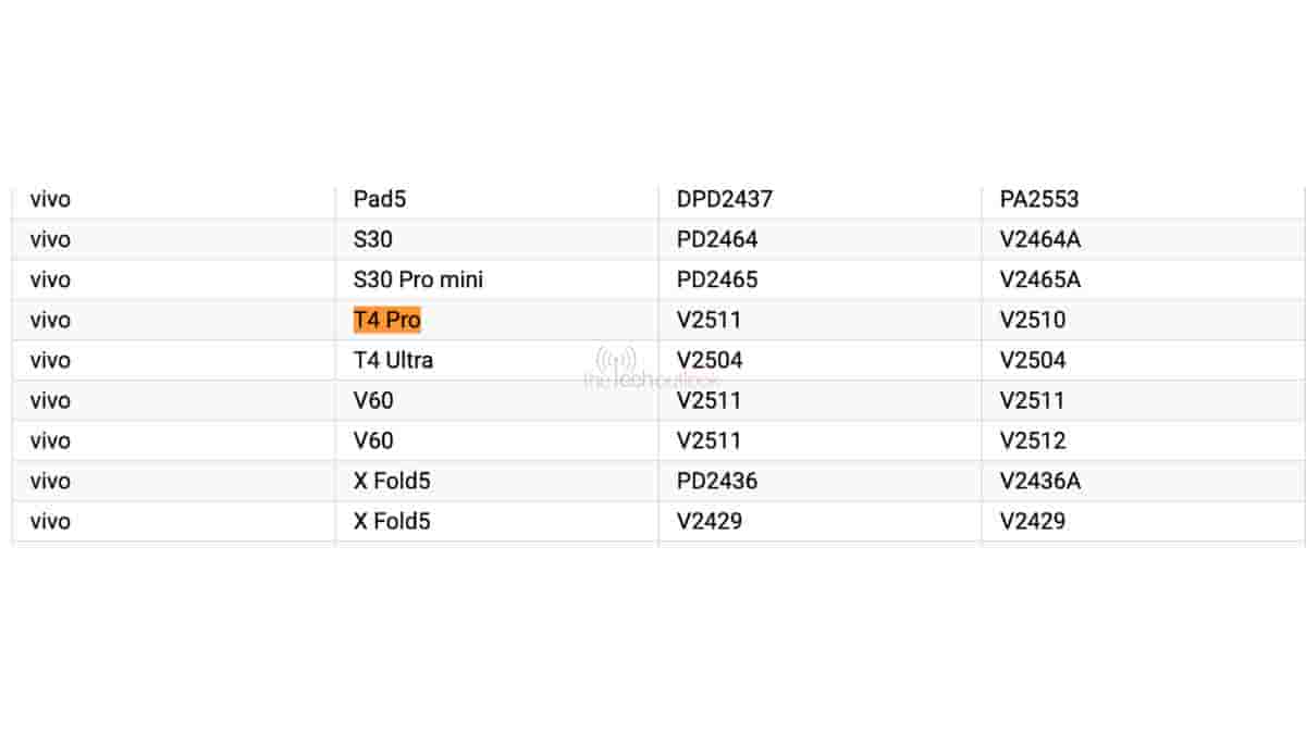 On the Google Play Console supported devices list, the phone is registered with the model number V2510, which was earlier seen in the Indian BIS certification as well. The listing also includes the name “Vivo T4 Pro” alongside the model number V2511, the same number associated with the Vivo V60 5G. This further supports the possibility that the Vivo T4 Pro might be a repackaged Vivo V60, but without the ZEISS branding.