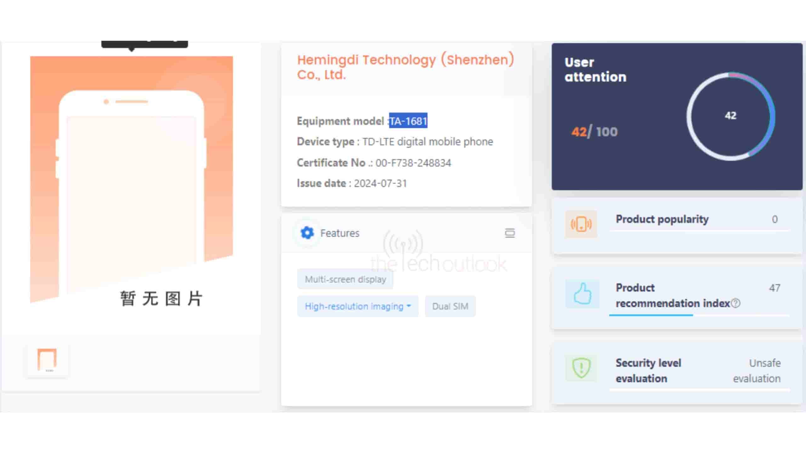 It measures 108x55x18.9mm and weighs 123g. It could be backed by a 14350mAh battery (rated capacity) and sport one camera. This device is an LTE single antenna terminal device.