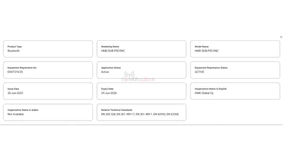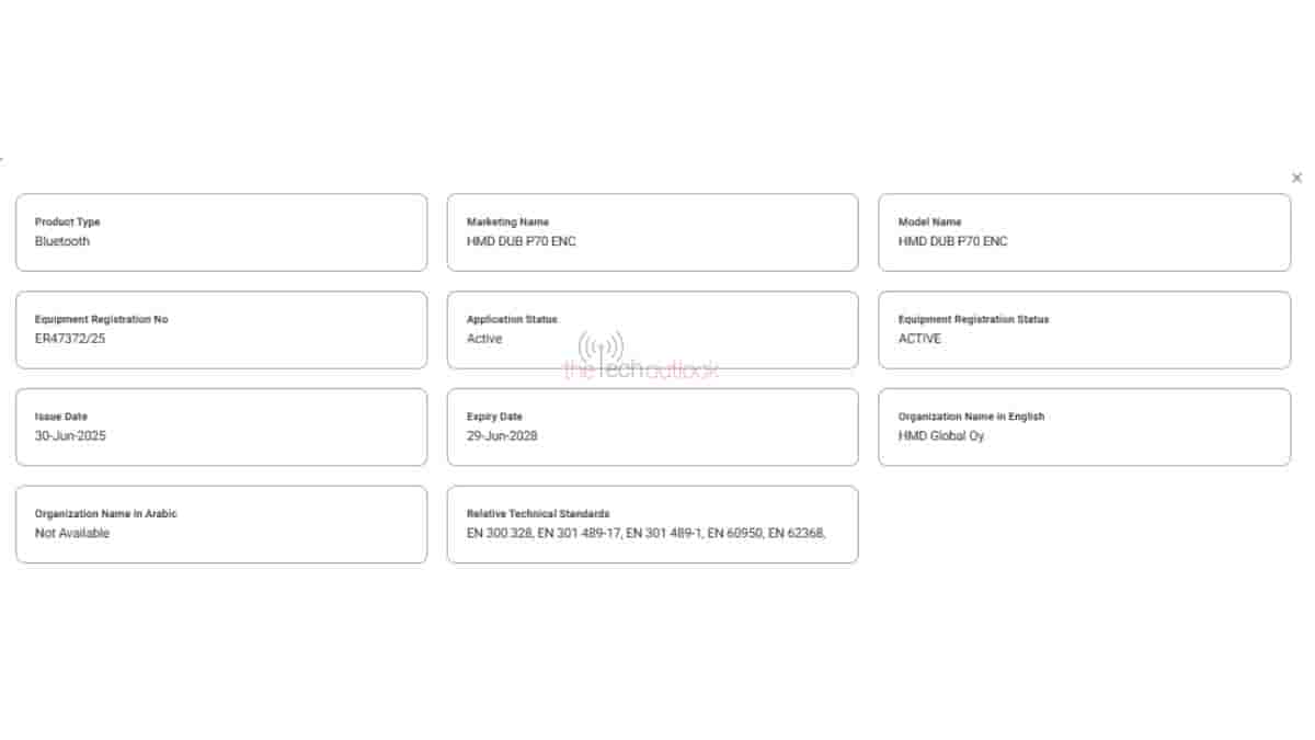 As mentioned, three new HMD earbuds – namely the HMD DUB P50 ENC, HMD DUB P60 ANC, and the HMD DUB P70 ENC have received the TDRA certification from UAE, and they have been certified with the equipment registration number of ‘ER47374/25’, ‘ER47373/25’, and ‘ER47372/25’. All the three are categorized as Bluetooth devices, with certification validity till the 29th of June 2028. Also, as pointed out above, their launch in UAE has been confirmed with their TDRA certification listing.