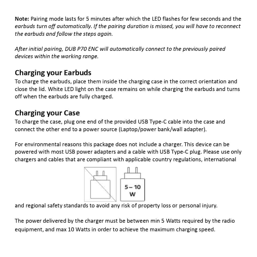 Coming to its user manual, we are able to understand that the earbuds will be featuring capacitive touch controls as well as light indicators. The charging case also has a light indicator and it glows white while charging and then turns off when fully charged. Also to note, the charger being used should have an output ranging in between 5W ~ 10W, and its Bluetooth range is 10 meters. Users are also being advised to keep the temperature between 15°C to 25°C for best performance. It must also be kept away from medical devices (implanted) with a minimum separation distance of at least 6″ to prevent interference.