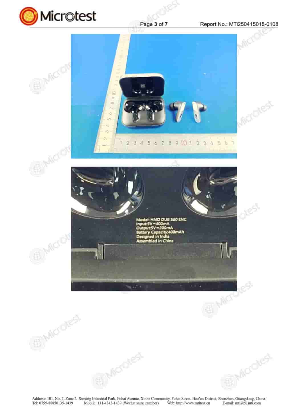 HMD’s DUB S60 ENC true wireless earbuds as per its FCC listing is pointed out to pack 35mAh and 400mAh batteries respectively within the earbuds and charging case. Additionally, it is also revealed to support a Bluetooth connectivity of version 5.4. Its live images also reveal that it will be coming in three different color choices of Grey x White, Purple, and Black. About the design, it has a flat rectangular form factor that features a boxy appearance. The corners are rounded, and the earbuds are beaded. Also, the stem of the earbuds has flat dimensions. Both on the earbuds as well as on the charging case, we can spot the HMD-branding too. Light indicators and a quad-mic setup may also be added features of the earbuds.