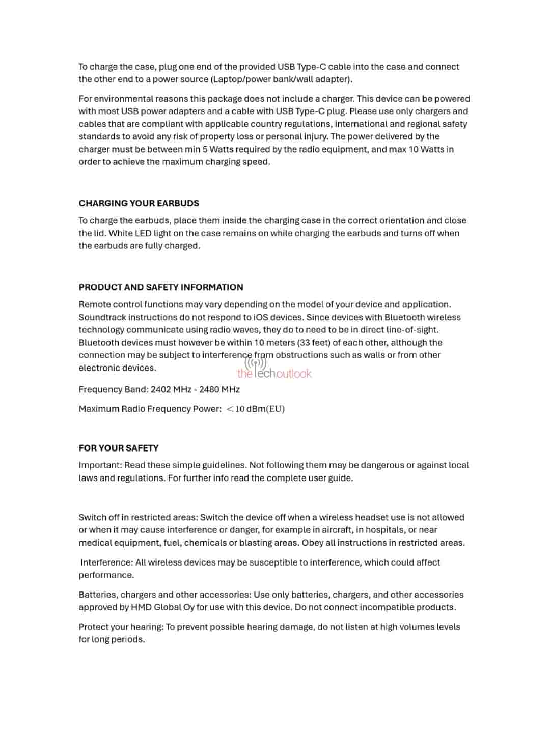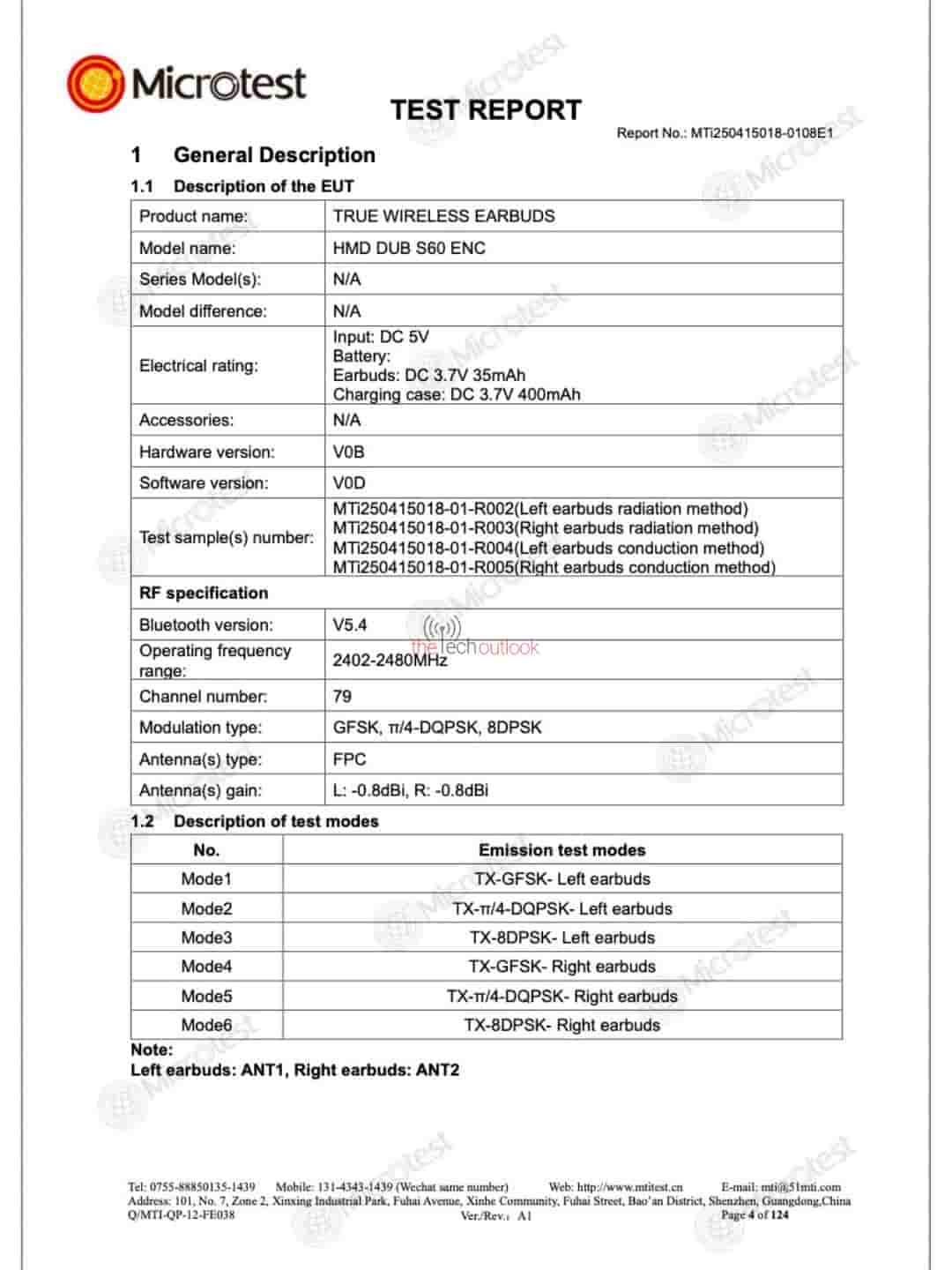Bluetooth 5.3, 10 meter Bluetooth range, up to 32dB active noise cancellation, 4 microphones, 50ms latency, 10mm drivers, SBC+AAC audio codecs, IPX5-rated water resistance, 35mAh (earbuds) + 400mAh (charging case) battery, up to 6 hour (earbuds) + 36 hours (charging case) battery life, 80 hour standby, ASAP charging, 1.5 hours charging time, and 0° C ~ 40° operating temperature are its revealed specs. Just to add, this device has also received the FCC certification with the FCC ID of ‘2AJOT-HMDDUBP60ANC’ (as per the user guide).