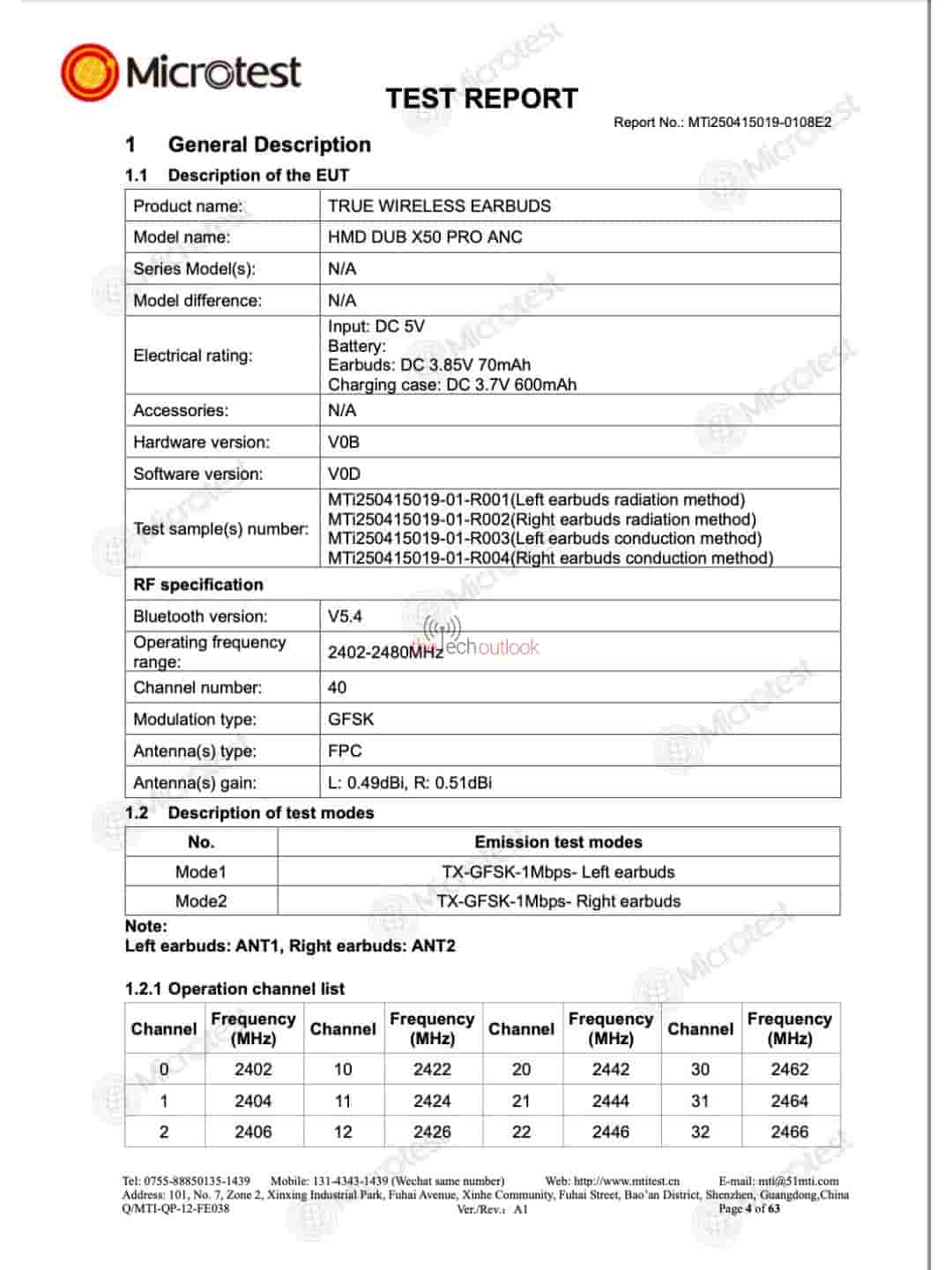 HMD DUB S60 ENC, HMD DUB X50 ENC, HMD DUB X50 PRO ANC – FCC Listings