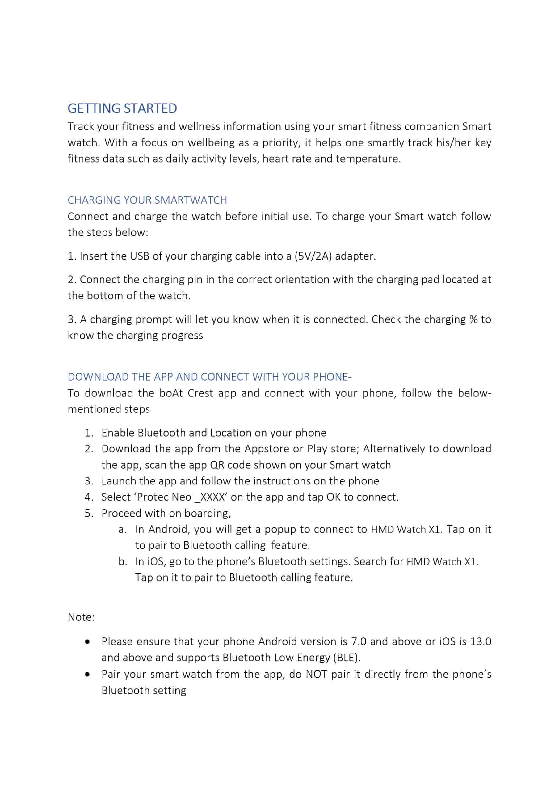 As per the FCC-revealed user manual, both the features and the design render of the HMD Watch X1 smartwatch have been spotted. HMD’s Watch X1 smartwatch is pointed out to be a smart fitness companion that can help in tracking both fitness and wellness information, and it prioritizes user wellbeing. Daily activity levels, heart rate, and temperature will be notably tracked. In terms of charging, it is suggested to support 10W charging (5V x 2A), and the charging pad is mentioned to be at the bottom of the smartwatch. The smartwatch is also compatible with the boAt Crest app, enabling users to connect it with Android and iOS smartphones (Android version of 7.0 and above; iOS version 13.0 and above). Additionally, the Bluetooth Low Energy support is also revealed to be among the key specs of the device.