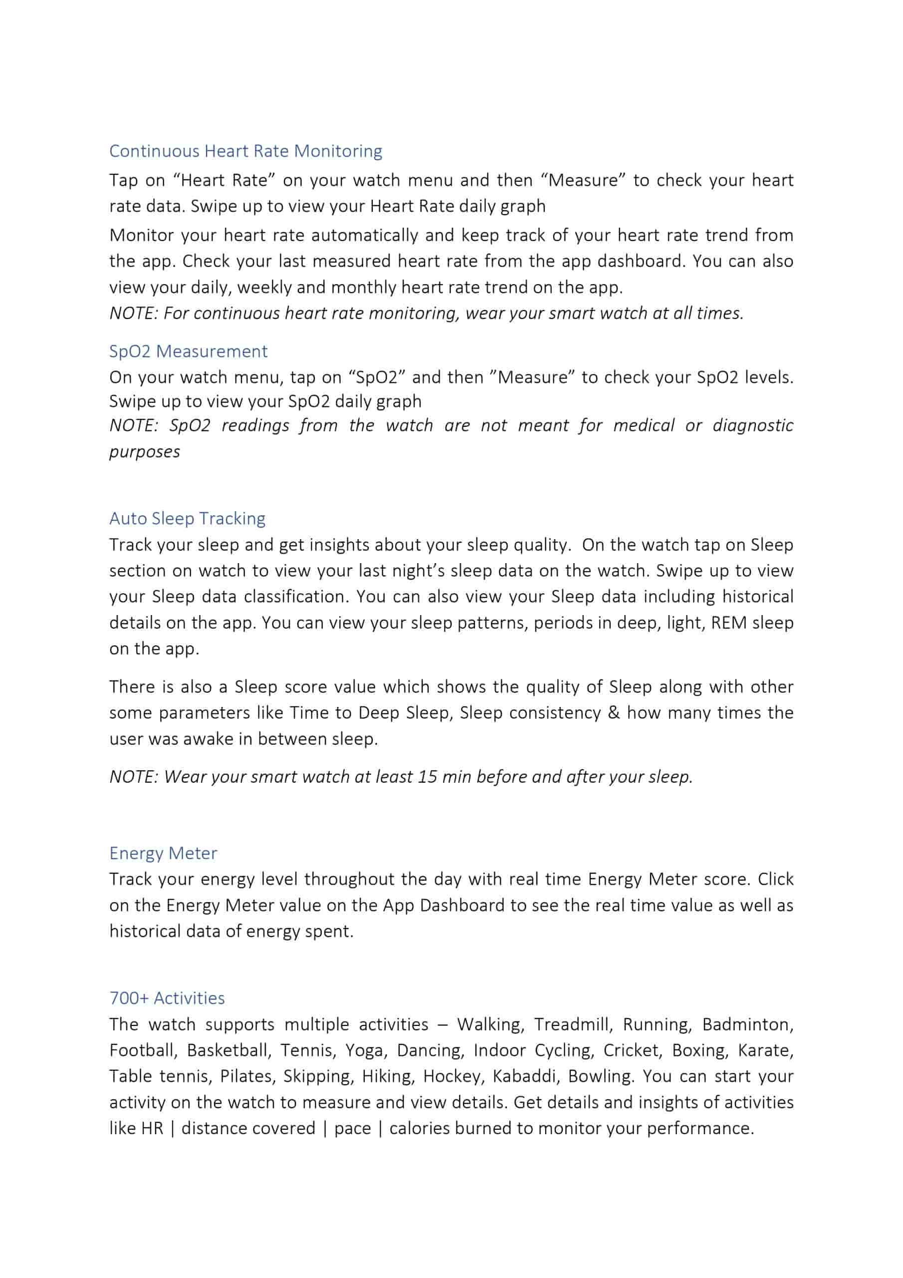 Speaking more, in addition to heart rate and temperature tracking, other metrics like SpO2, sleep and sleep score, stress, energy meter value, steps, calories, and distance can be tracked and monitored with the help of the smartwatch as well. Other notable features of the smartwatch include the 700+ activities (walking, treadmill, running, badminton, football, basketball, tennis, yoga, dancing, indoor cycling, cricket, boxing, karate, table tennis, skipping, hiking, hockey, bowling, and more), fitness crew, fitness plans, auto activity detection, sedentary reminder, breath exercise, call/SMS/social message notifications, watch face studio, pre-installed watch faces, quick reply, Bluetooth calling, custom messages, AOD, female wellness, phone finder, stopwatch, timer, alarm, camera control, remote music control, voice assistant, power saving mode, and SOS.