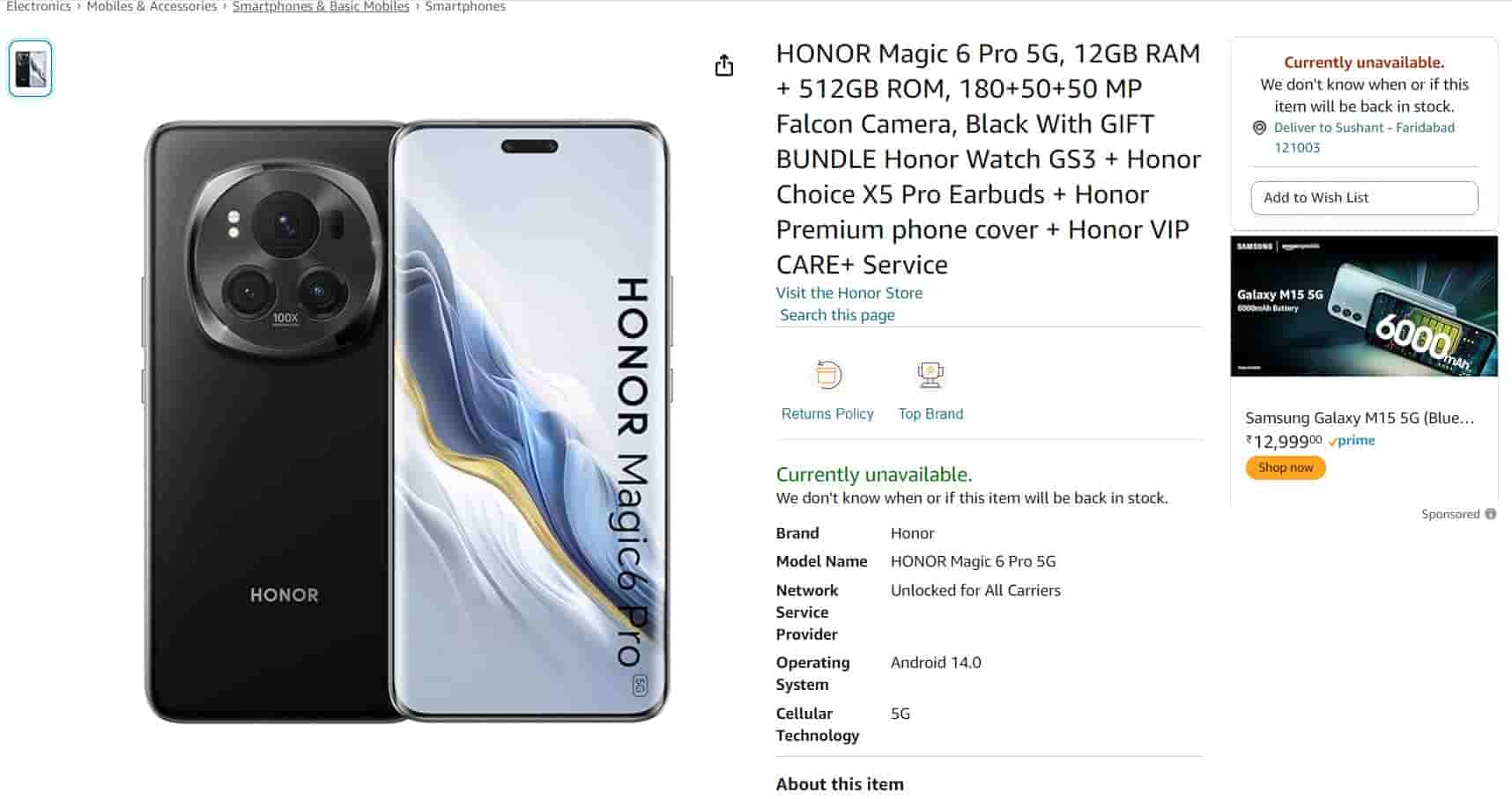 Honor Magic 6 Pro Smartphone Appeared On Amazon India Ahead Of Its Launch