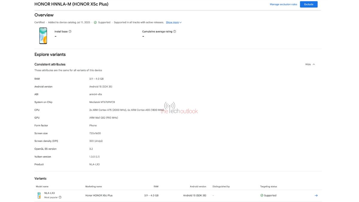 Honor X5c Plus Spotted on the Google Play Console Database: Helio G70 Chip, 4GB RAM, Android 15 OS, HD+ Display, Front Look Design, and More Revealed