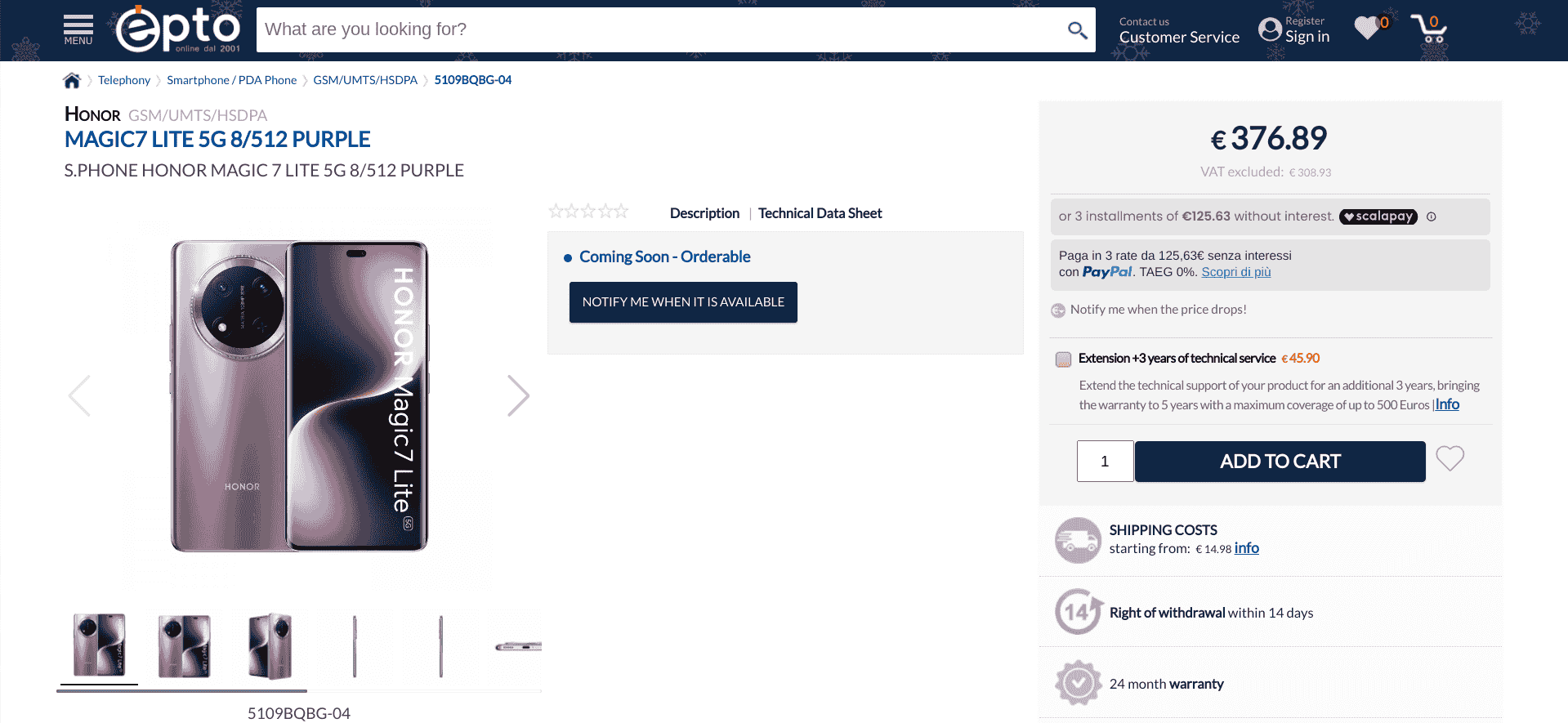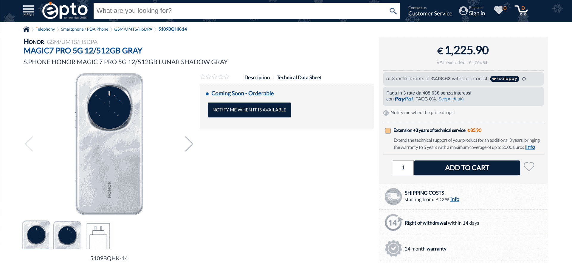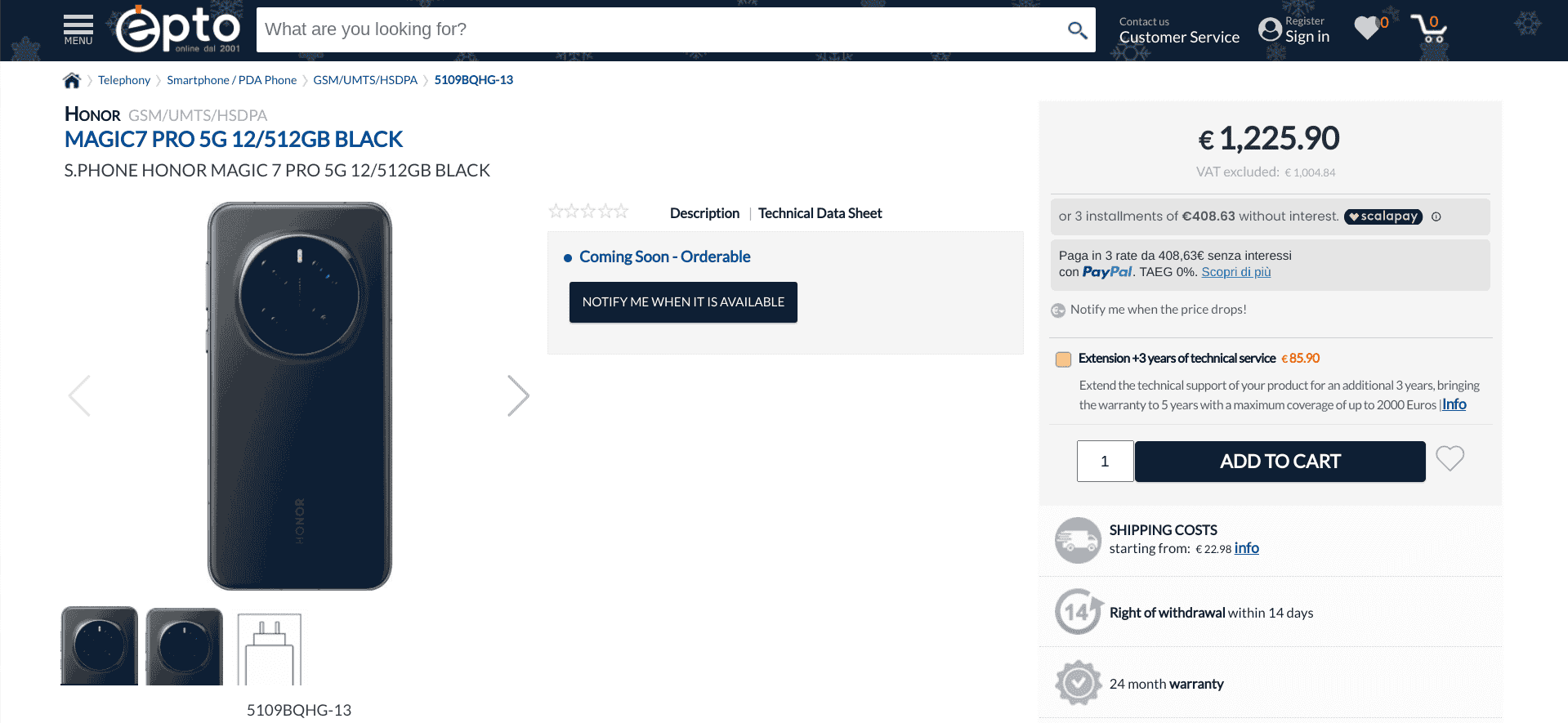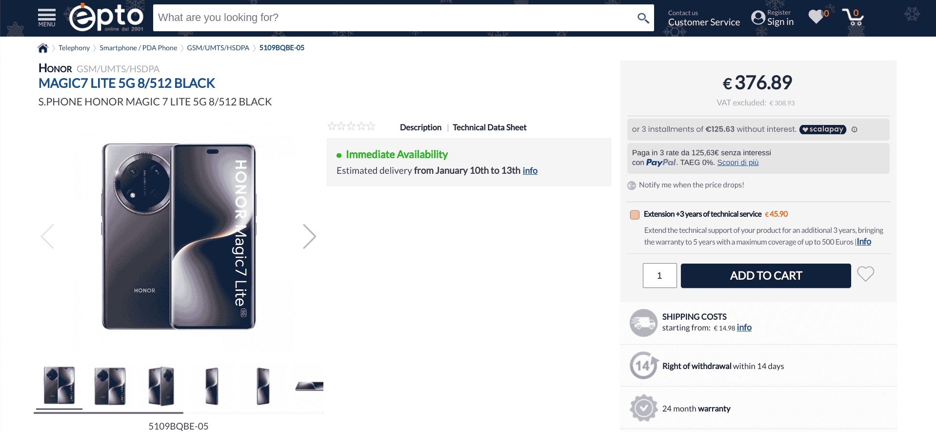Magic 7 Pro and Magic 7 Lite – Listed on Epto, Italian Shopping Platform