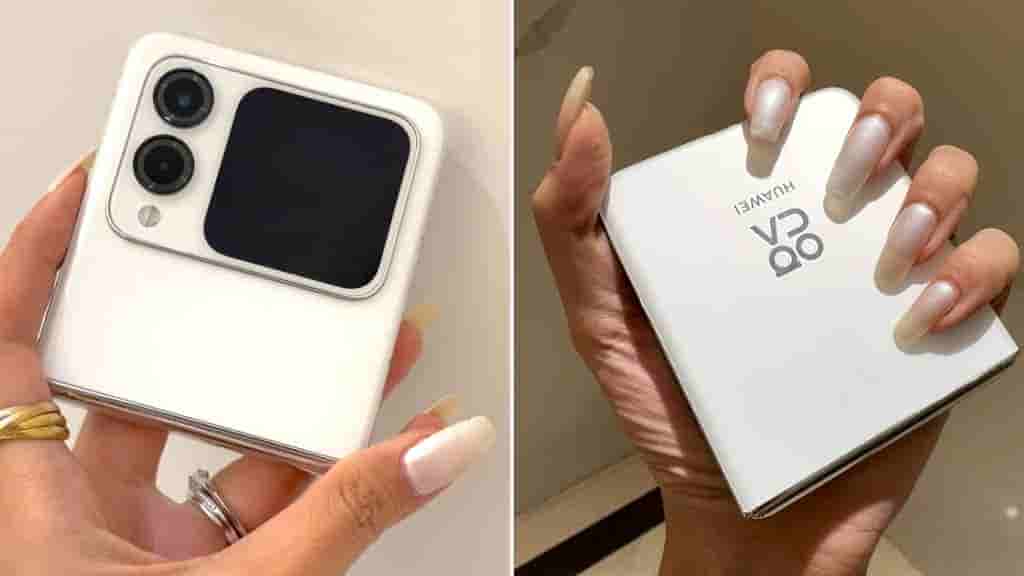 One of the users ChinChin(via Huawei Central) has shared the live image of the Huawei Nova flip phone. This phone is shown in white color unlike what we saw in the teaser video. The image shows the square cover screen housed in a rectangular island with a dual camera setup. This photo mainly highlights the cover display, its glossy back panel, and rounded body structure.