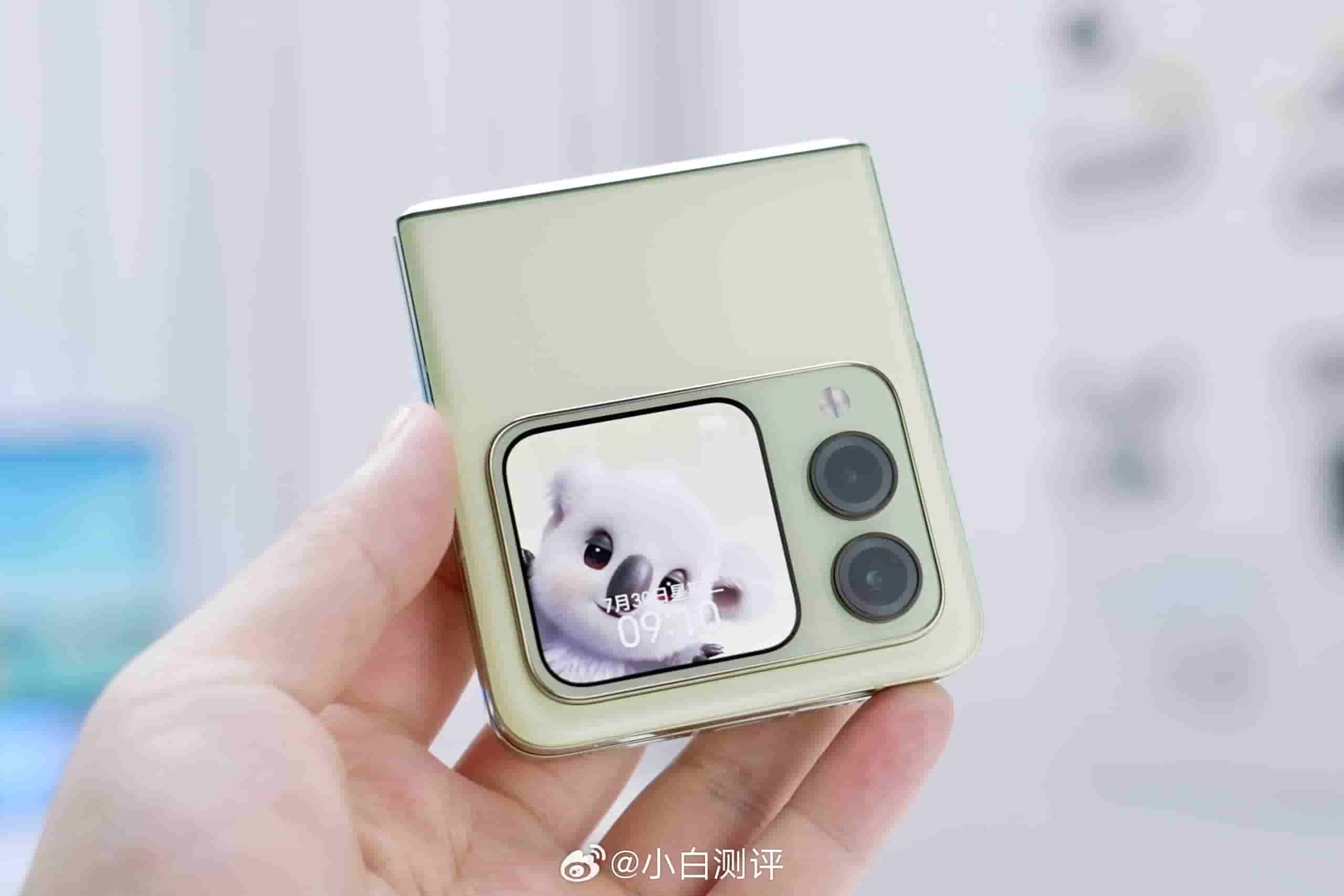 One of the users ChinChin(via Huawei Central) has shared the live image of the Huawei Nova flip phone. This phone is shown in white color unlike what we saw in the teaser video. The image shows the square cover screen housed in a rectangular island with a dual camera setup. This photo mainly highlights the cover display, its glossy back panel, and rounded body structure.