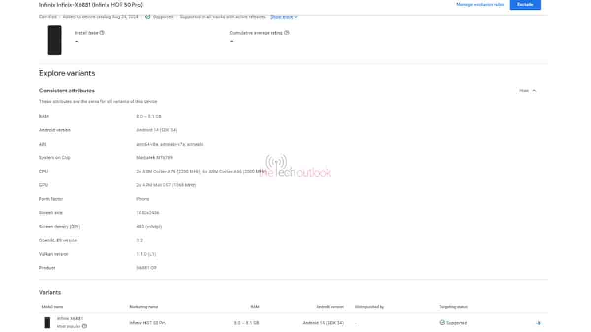 Reports are already out regarding the Infinix Hot 50 Series lineup, which includes the Infinix Hot 50 (X6882), Infinix Hot 50 Pro (X6881), Infinix Hot 50 Pro+ (X6880), Infinix Hot 50 5G (X6720), and Infinix Hot 50i (X6531). Among these, the Infinix Hot 50 5G has already been announced for launch in India on September 5th. Meanwhile, the 4G variant was recently spotted on Google Play Console and Geekbench, revealing that it could be powered by the Helio G100 SoC. Additionally, the Pro variant has now appeared on the Google Play Console, revealing some key specifications.
