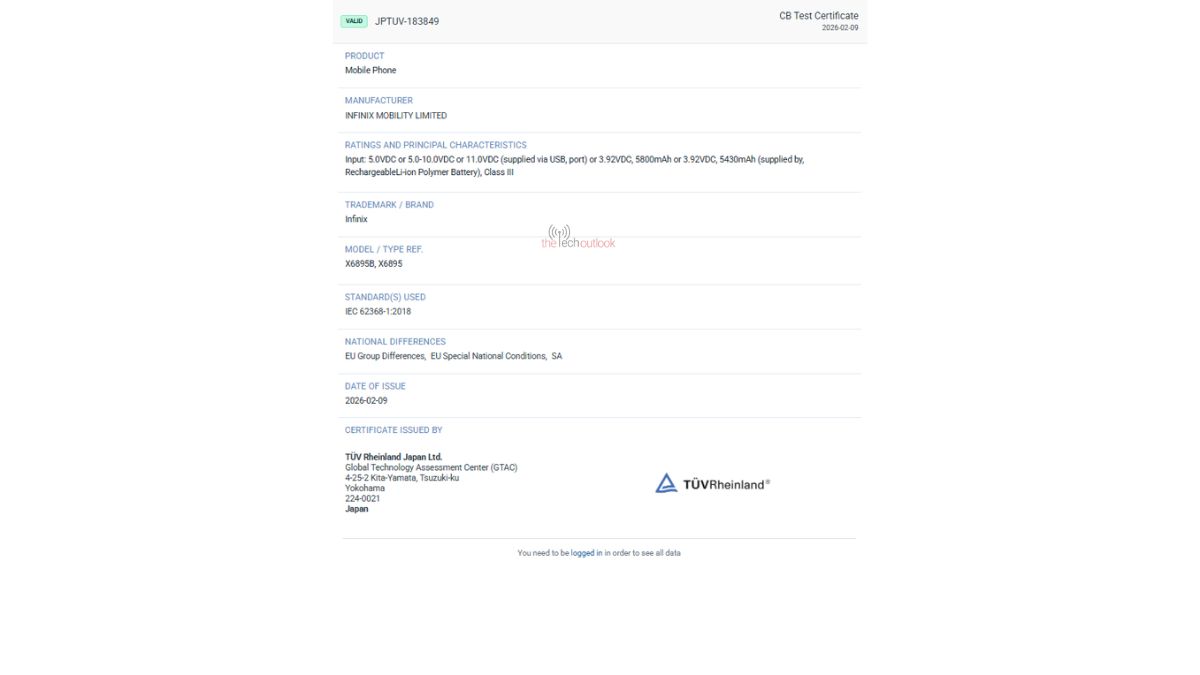 On the TUV certification, two Rechargeable Li-ion Polymer Battery models are listed on the platform. One is 5800mAh, and the other one is 5430mAh, and the way these are listed, it appears that the former belongs to the X6895B, while the latter belongs to X6895. This would mean that Infinix will likely launch two variants of this smartphone in different regions.
