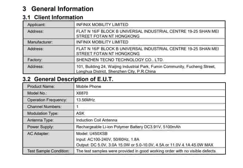 The FCC authority of the United States has certified the Infinix Note 50S 5G (X6870) with the FCC ID of ‘2AIZN-X6870’. Speaking more, the FCC database again reveals that the device would be equipped with a 5100 mAh battery, and it will support 45W wired fast charging. A charging adapter with the model number of ‘U450XSB’ has also been listed along with the smartphone.