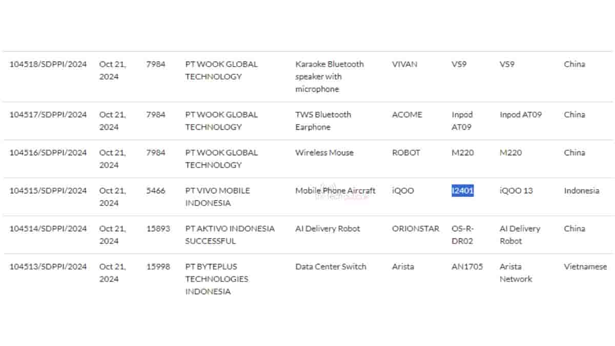 Today our team at The Tech Outlook spotted iQOO 13 global variant on SDPPI and BIS certification websites with model number I2401.