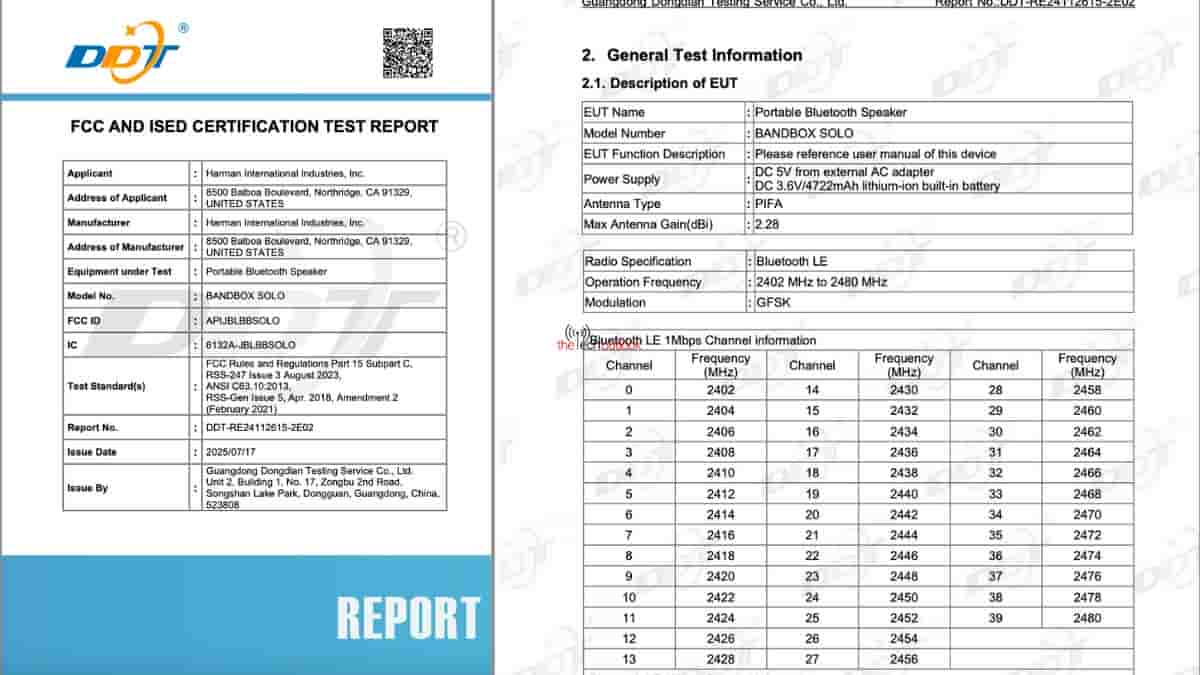 JBL BandBox Solo Speaker Certified by the FCC Authority: 4722 mAh Battery, Bluetooth 5.1, and More Revealed