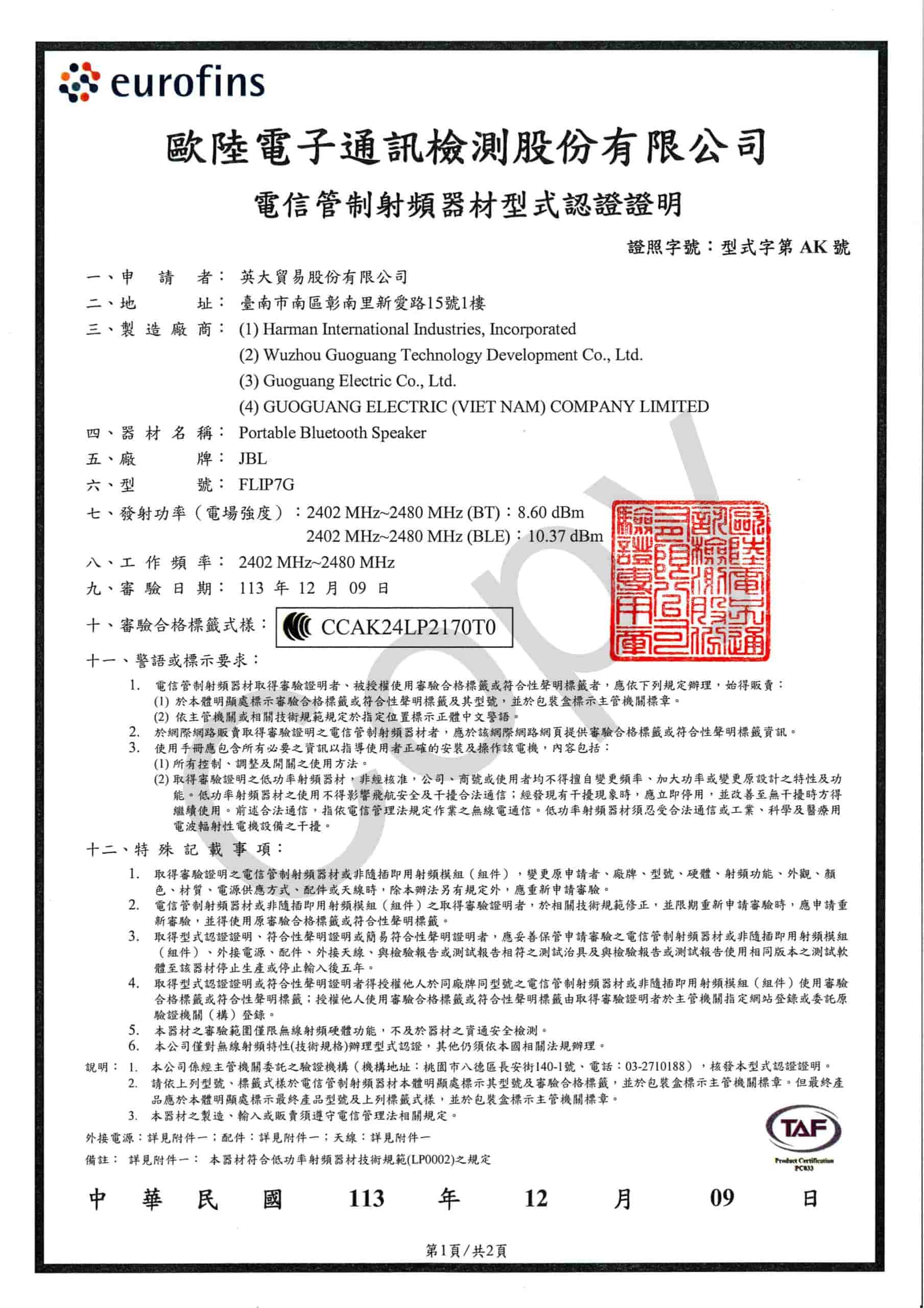Following the Flip 6 model of 2021, JBL is reportedly in the work with its next iterative speaker – JBL Flip 7, and it has now been spotted on the Eurofins certification platform bearing the model number – ‘FLIP7G’. It has been listed on the certification database as a portable Bluetooth speaker with working frequency of ‘2402 MHz ~ 2480 MHz’ and transmit power (electric field strength) of ‘(BT): 8.60 dBm & (BLE): 10.37 dBm’.