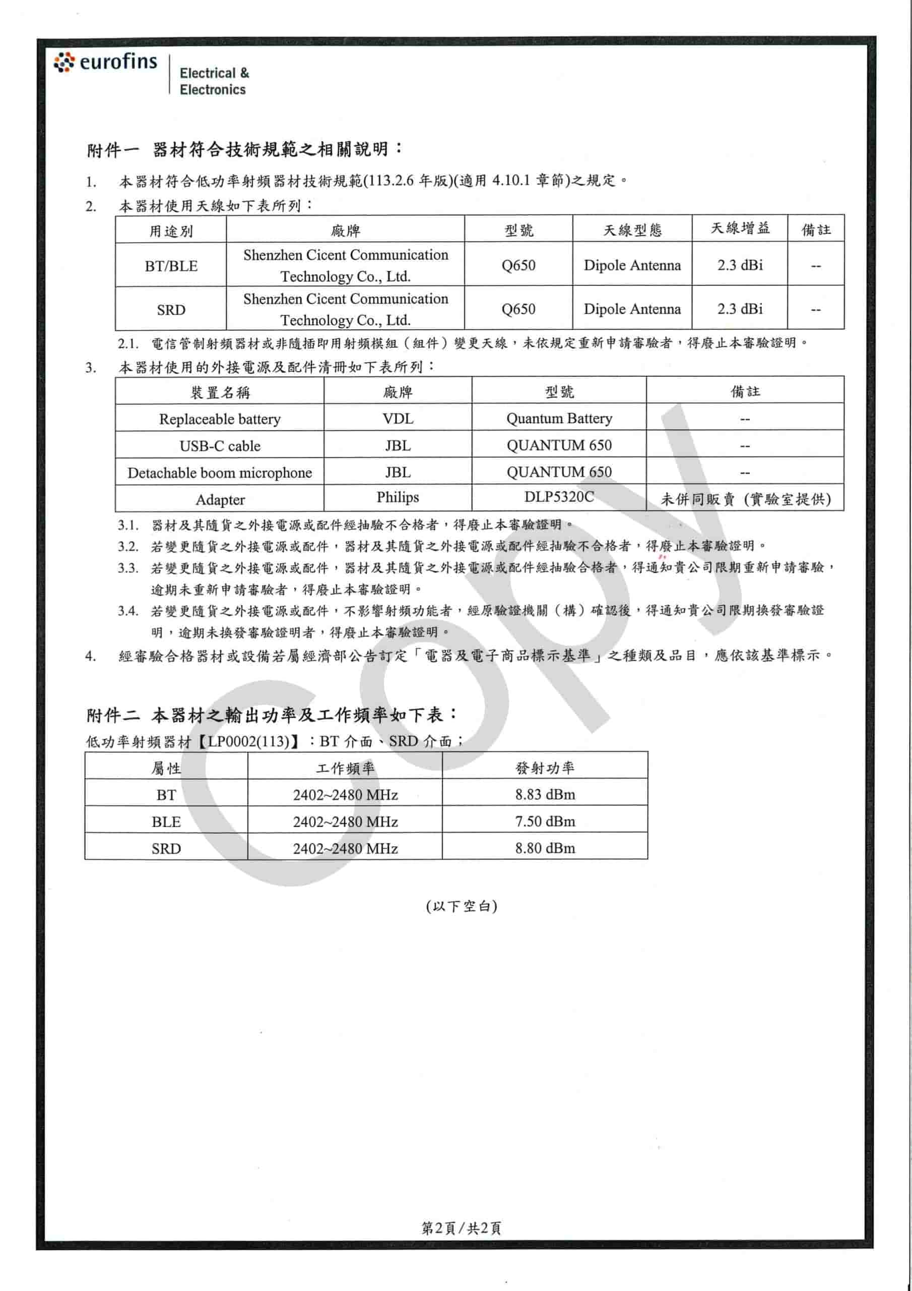The JBL Quantum 650 gaming wireless headset has received the NCC certification with the inspection and approval label number of ‘CCAK25LP1510T1’. About its listed specs, this gaming wireless headset will be featuring a dipole antenna, 2.3dBi antenna gain, and Bluetooth LE (Low Energy) + SRD (Short Range Device) modes. Notably, the device is also pointed out to equip a replaceable battery too (Quantum battery with a rated capacity of 700 mAh).