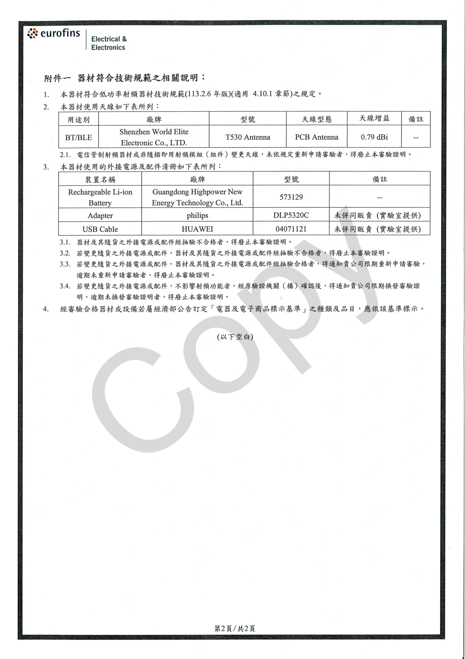 On the NCC certification platform, the JBL TUNE 530BT headset has been listed with the inspection and approval label number of ‘CCAK25LP2040T8’, and it has been categorized as a Bluetooth headset. Regarding its revealed key specs, it has an operating frequency of 2402 MHz ~ 2480 MHz (BT: 7.50 dBm; BLE: 2.10 dBm) and features a PCB antenna (T530) with an antenna gain of 0.79 dBi. A rechargeable Li-ion battery with the model number of ‘573129’ is also revealed for the device.