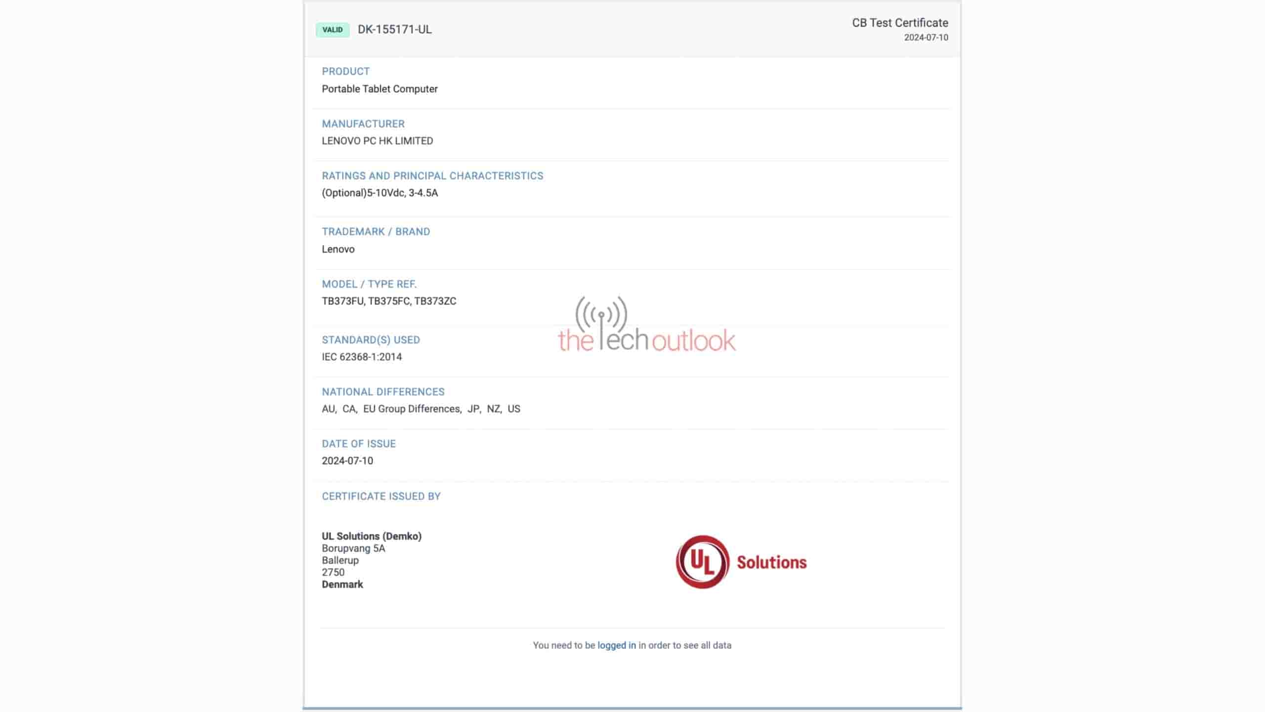 This same tablet will likely be launched in the Chinese market under a different moniker. According to a report by IT House, the model numbers “TB375FC” and “TB373FU” have already appeared on the 3C certification, showing 45W fast charging support, as revealed by UL-Demko.