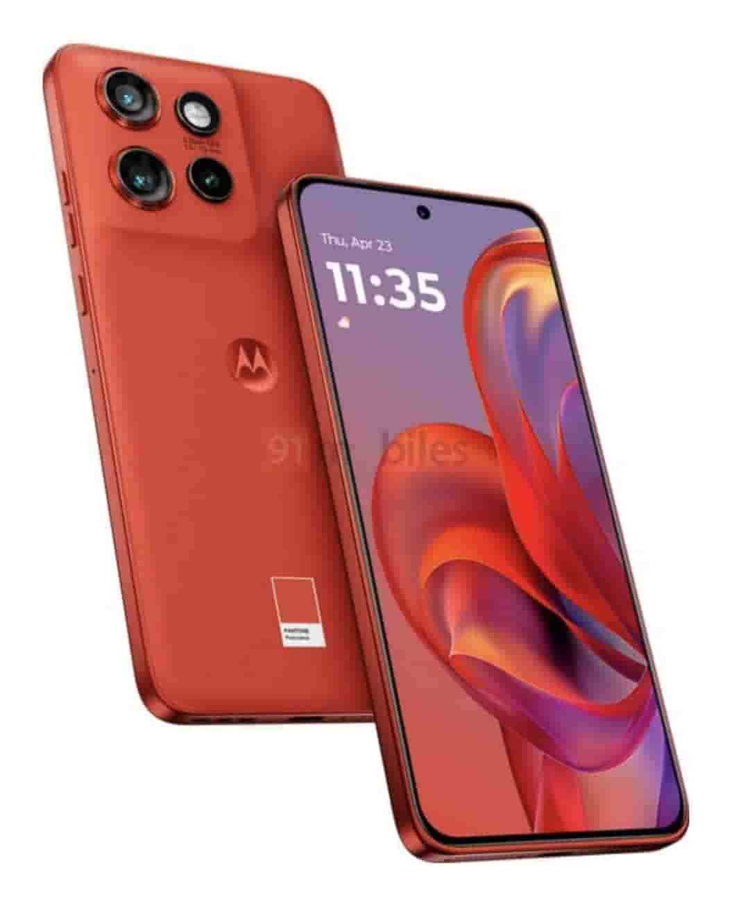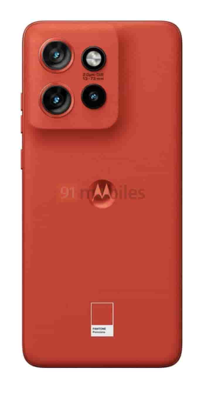 The smartphone looks much similar to its predecessor Motorola Edge 40 Neo. The ‘Pantone’ labeling can also be seen for this color option. It seems to feature a flat display while on the rear side, a square camera module is seen that houses three camera sensors and an LED flash. It looks like the rear side features a vegan leather finish. The front side includes a punch-hole cutout for the selfie camera while the volume and power buttons are present on the right side.