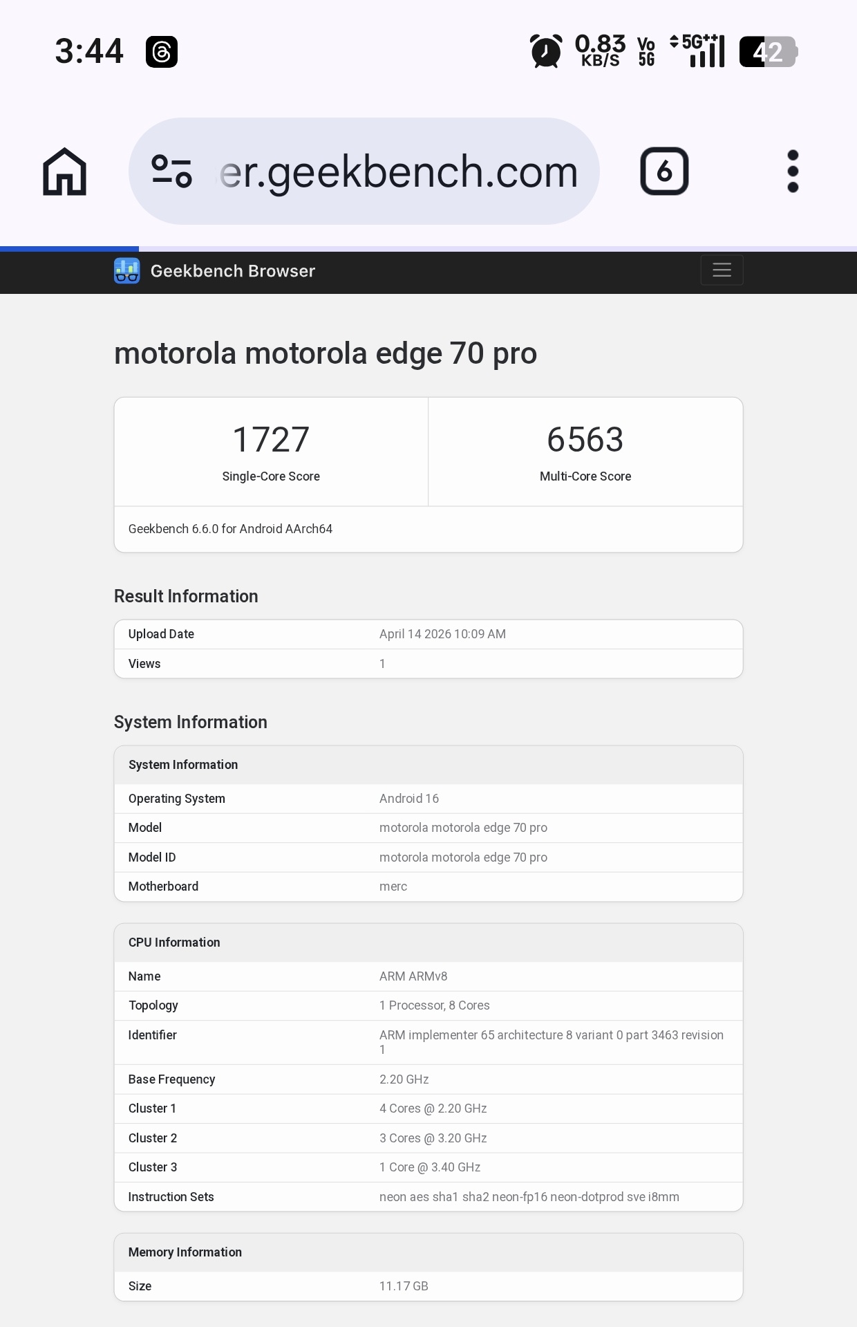 As per the Geekbench database (via @yabhishekhd), the Motorola Edge 70 Pro smartphone has achieved 1727 points and 6563 points, respectively on the single-core and multi-core tests. The listing confirms that the device will run on the Android 16 operating system out of the box, and the 12GB RAM variant of the smartphone has also been revealed.