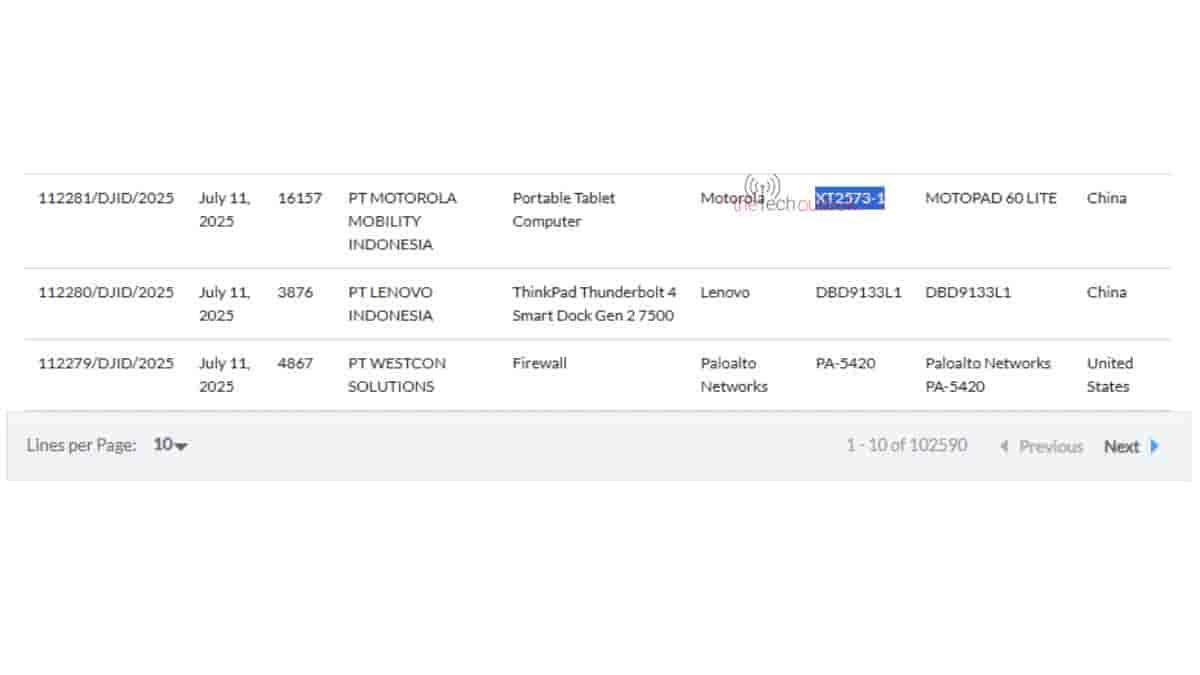Motorola’s Moto Pad 60 Lite tablet carrying the model number of ‘XT2573-1’ has been certified by the SDPPI authority with the certificate number of ‘112281/DJID/2025’, and it has been listed with the PLG ID of ‘16157’. Its moniker has also been mentioned on the certification platform, and it is categorized as a ‘portable tablet computer’. Also to add, via the SDPPI certification, its launch in the Indonesian market has also been confirmed.