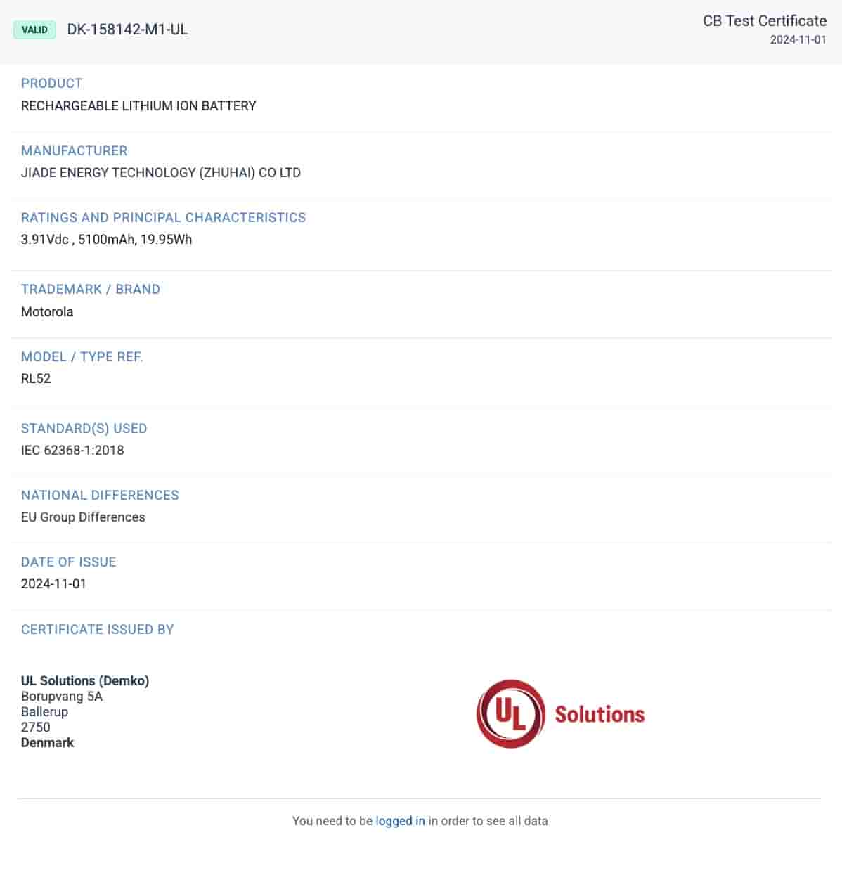 Coming to its battery and charging specs, a battery that bears the model number of ‘RL52’ is packed within the device and as per the UL Demko certification listing, it has a rated battery capacity of 5100 mAh. Charging adapters with the model numbers of ‘MC-101’, ‘MC-102’, ‘MC-103’, ‘MC-106’, ‘MC-107’, and ‘MC-109’ are also listed along with the device, and it is revealed to support a 10W wired charging feature. Just to add, an earphone has also been tested with the device and this means, a 3.5mm audio jack may be present on it.