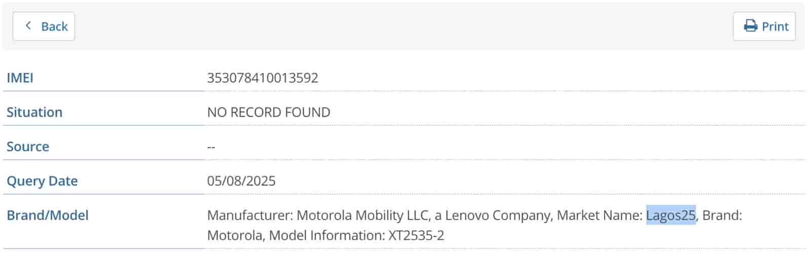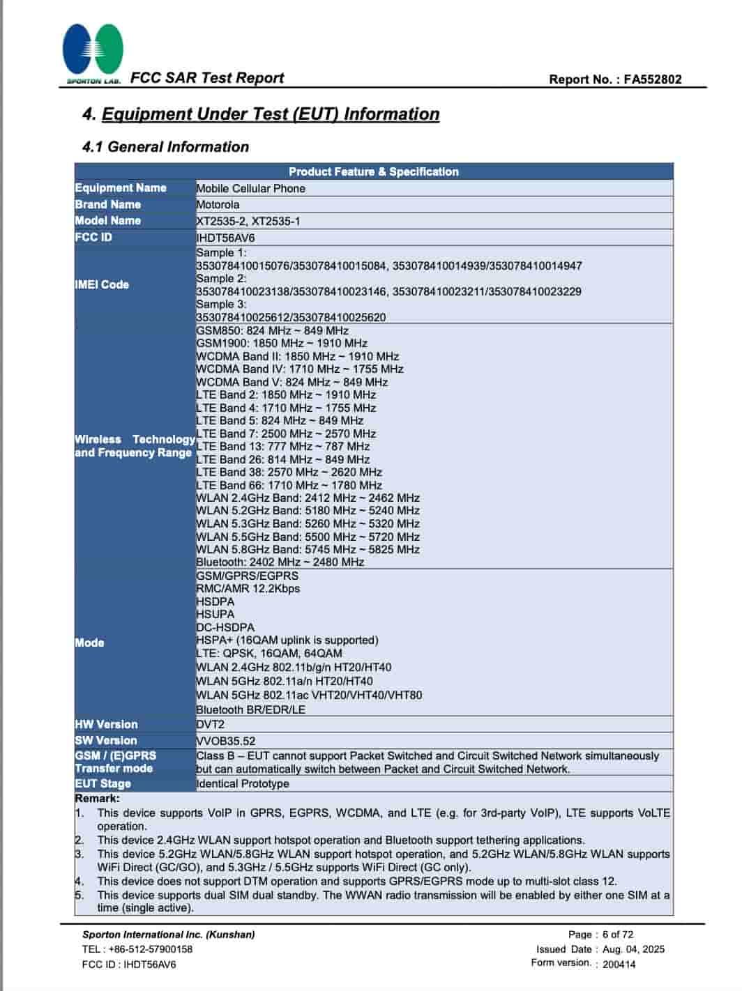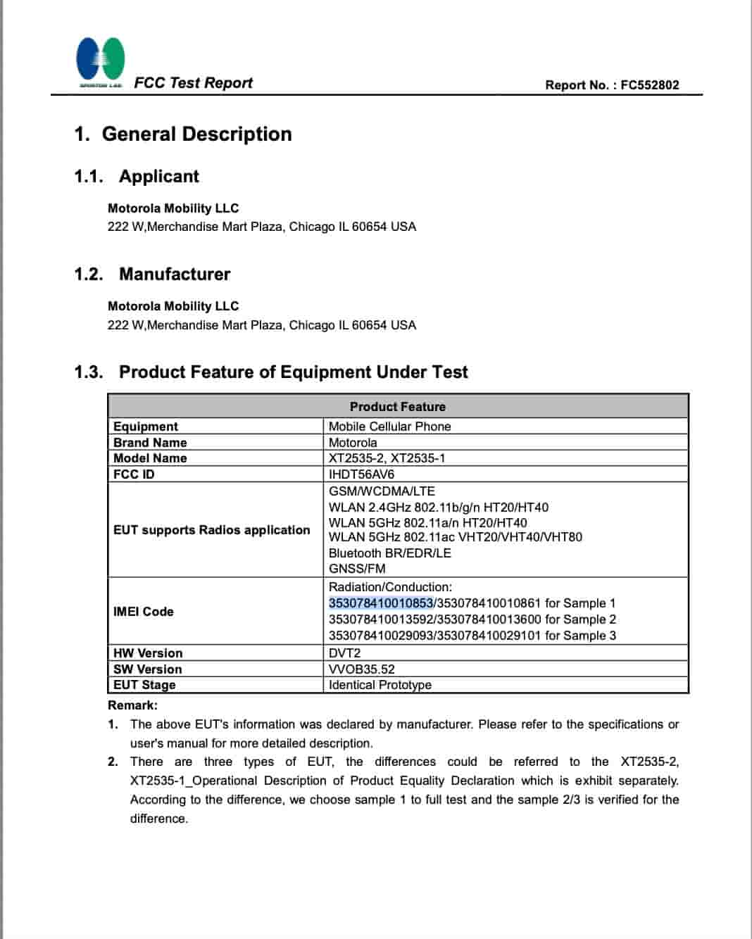 This upcoming Motorola smartphone that has now been certified by the FCC authority carries the model numbers of ‘XT2535-2’ and ‘XT2535-1’, and it has received the certification with the FCC ID of ‘IHDT56AV6’. To add, the IMEI database also points out that its codename is ‘Lagos25’ (for ‘XT2535-2’).