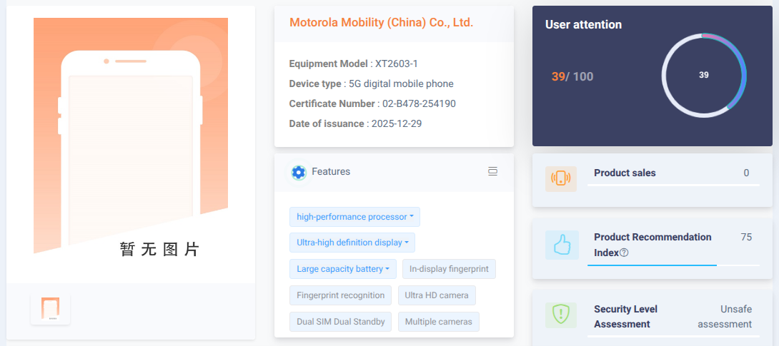 Motorola X70 Air Pro (XT2603-1) – TENAA Certification
