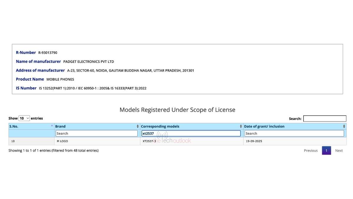 Motorola’s ‘XT2537-3’ smartphone has now been listed on the BIS certification platform and it has received the grant or inclusion onto the database as of on the 19th of September 2025. Via the certification listing, its arrival to the Indian market has also been confirmed.