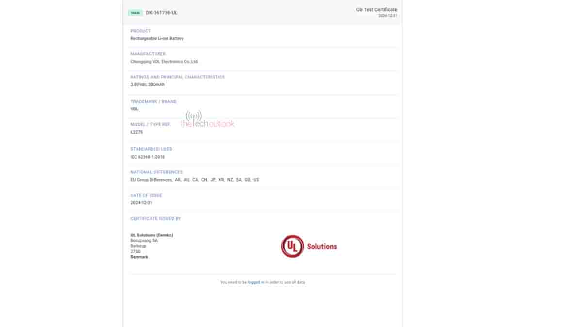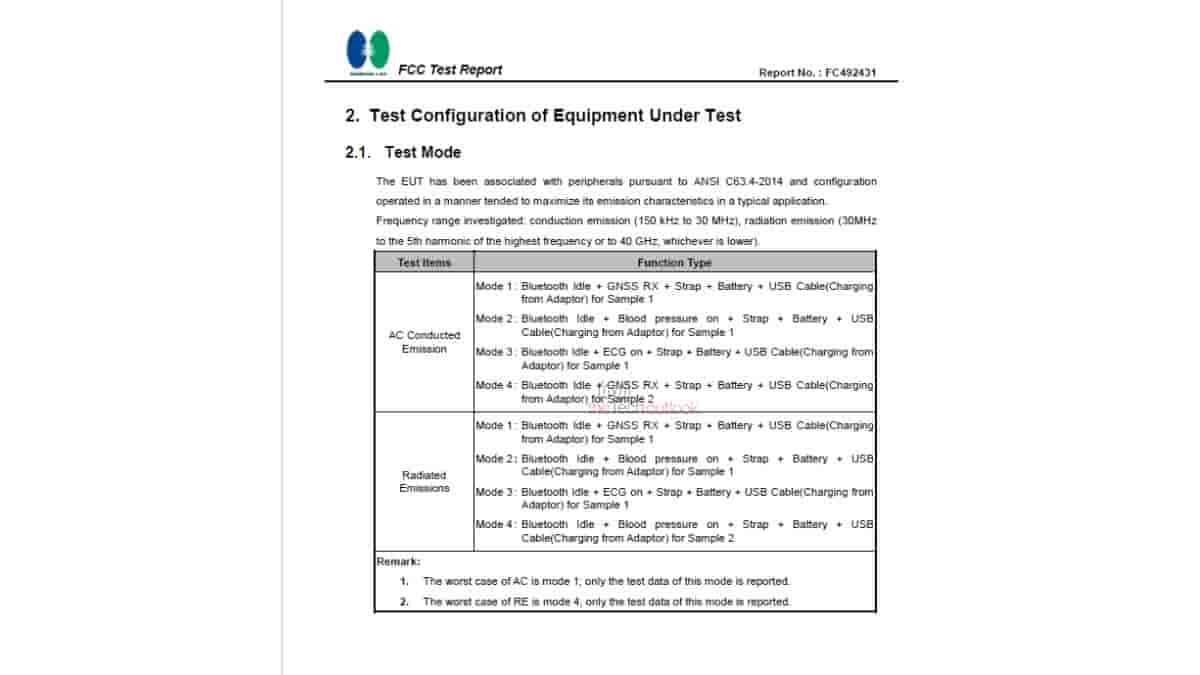 On the battery side, it will be packing a battery with the model number of ‘L3275’, and it is going to come with a USB cable carrying the model number of ‘SLQ-A269A’. To add, via the UL Demko certification platform, the ‘L3275’ battery is revealed to pack 300 mAh battery capacity. Furthermore, the FCC database also reveals that the device supports both BP (blood pressure) and ECG (electrocardiogram) health monitoring features, as well as the GPS navigation system (1575 MHz).