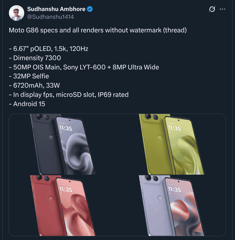 Moto G86 – Revealed Render Images